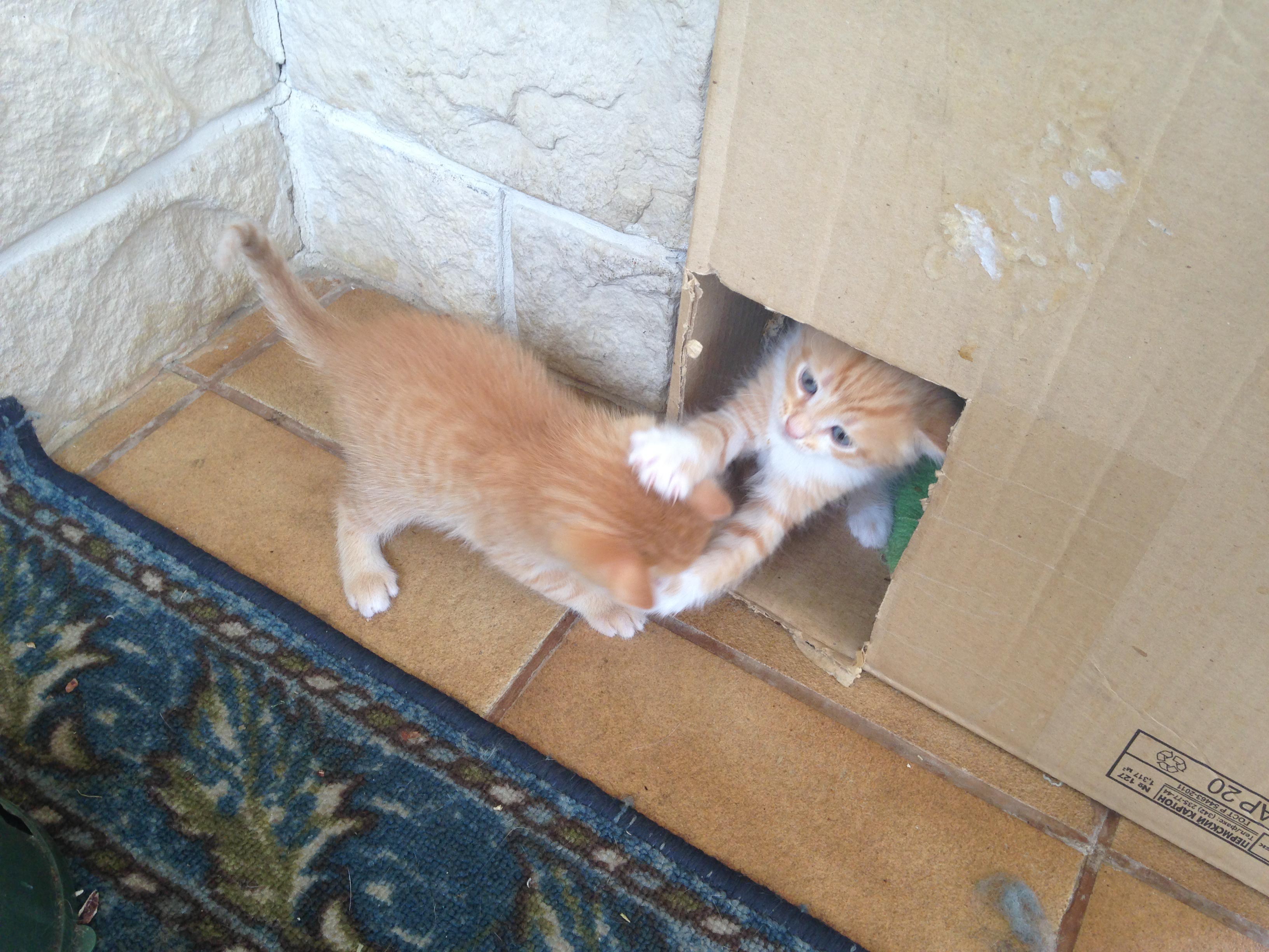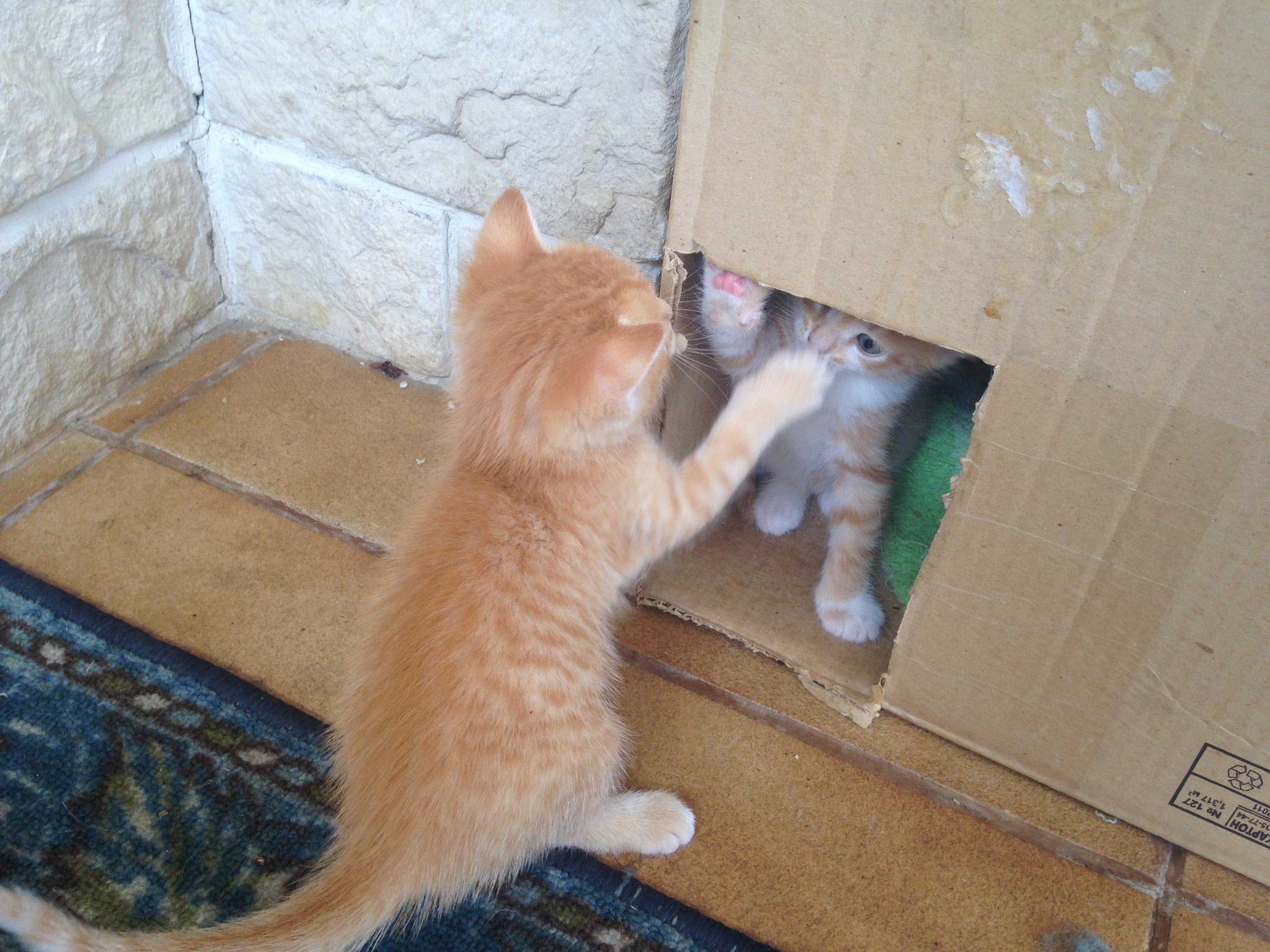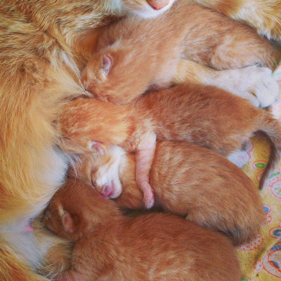 За сутки малыши оклемались и мамашка приняла жилье, котят не утаскивает.