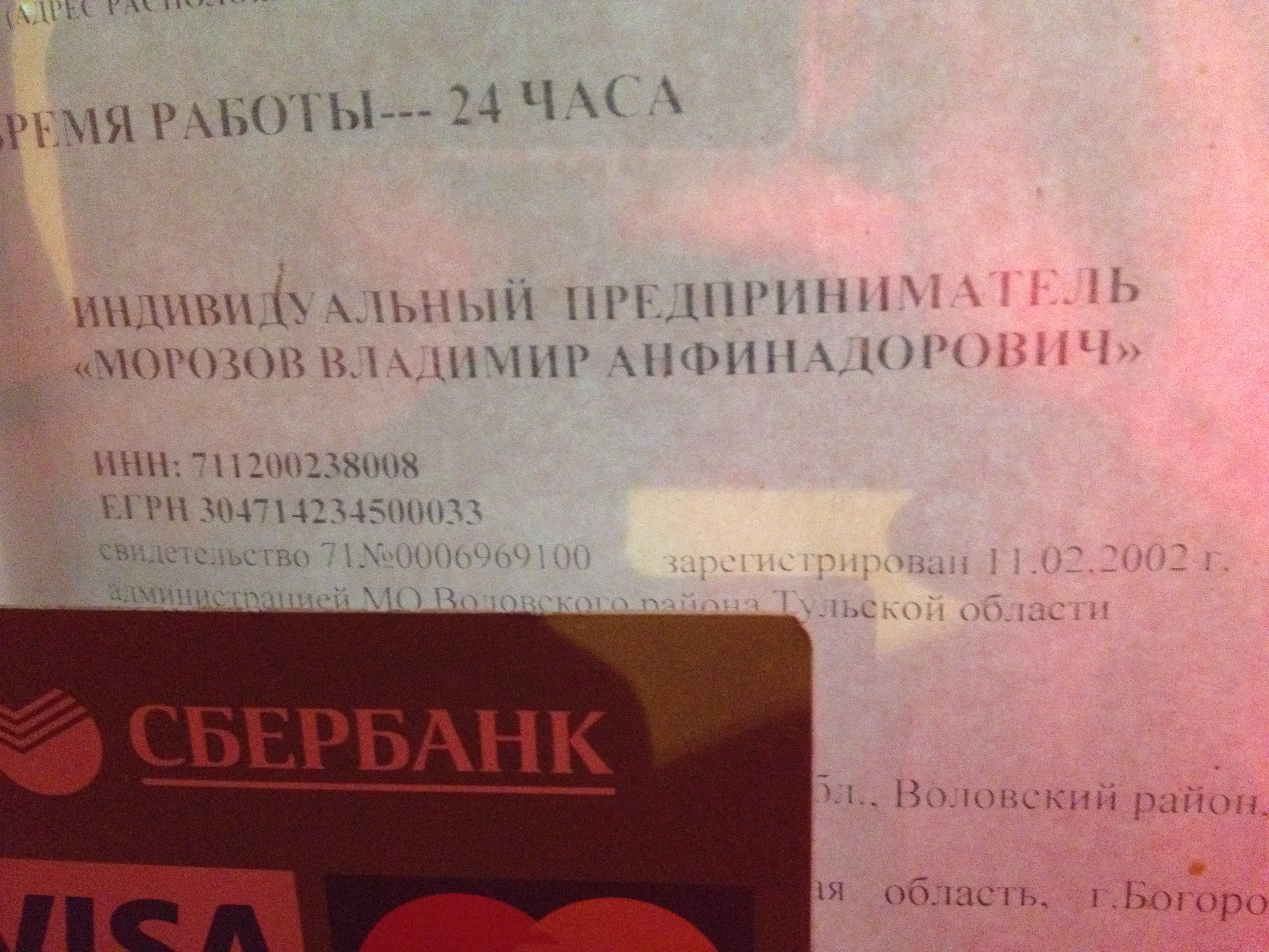 Сделал фотки информации о заправке и её владельце.
