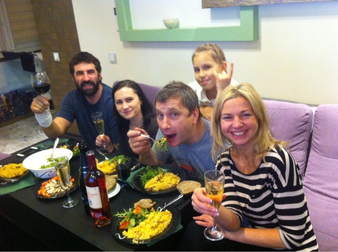 Вечер имени командировки в Мадрид. Салат из морепродуктов, сардины - из завезенного контрабандой. Паэлья - воссозданная по воспоминаниям.