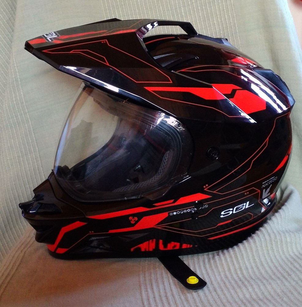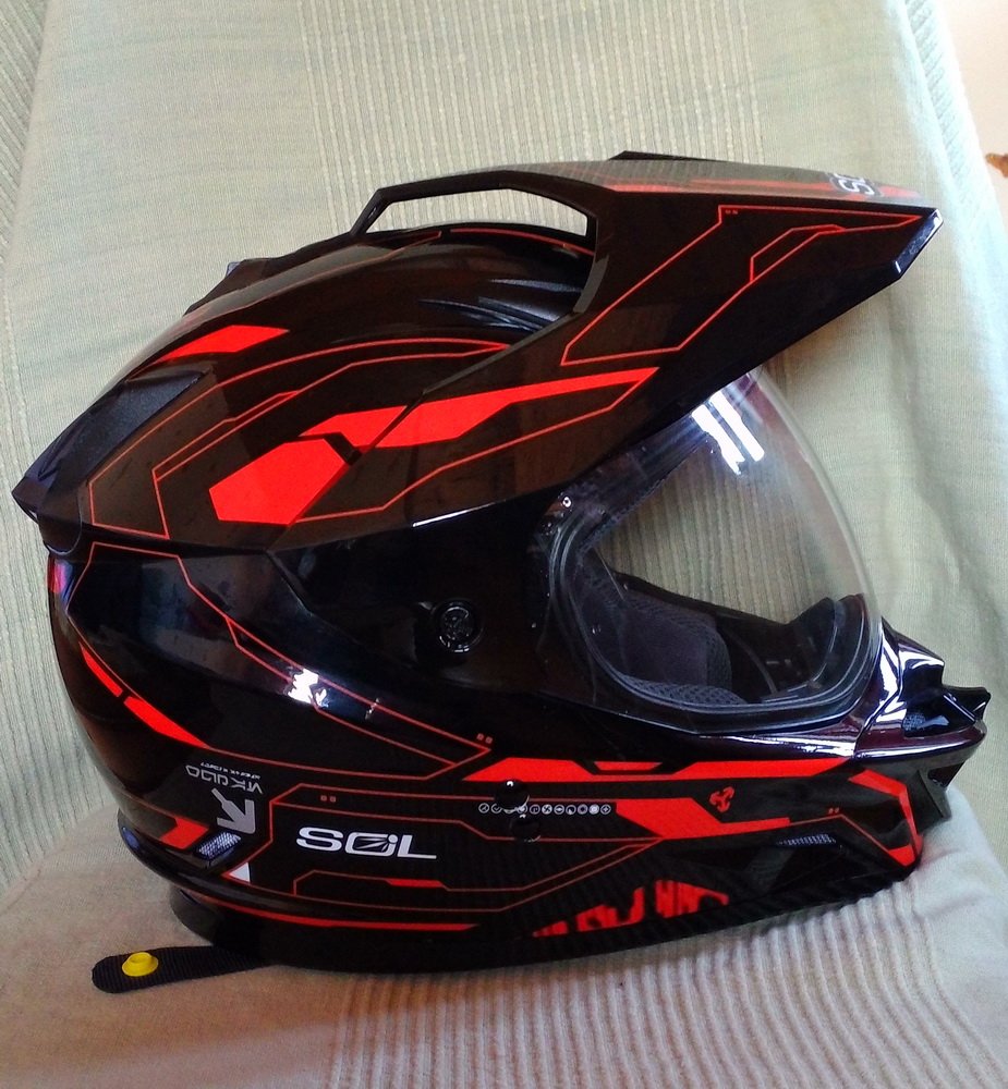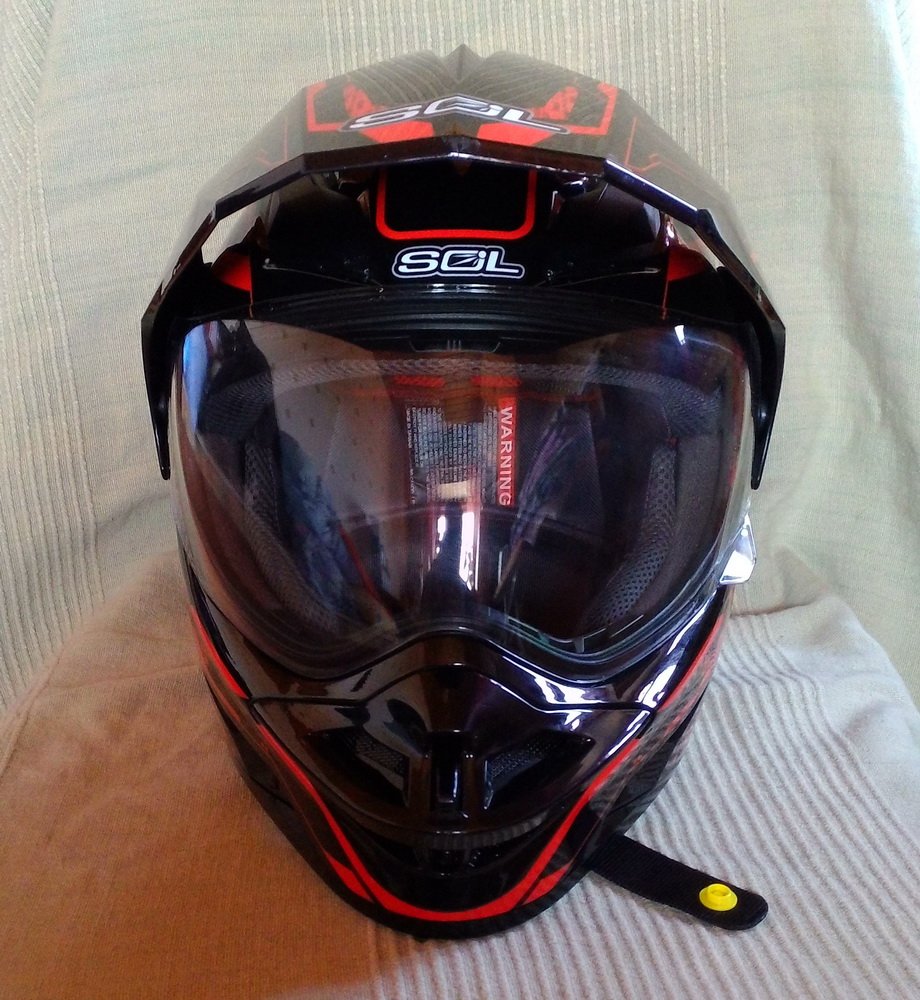 Лот №2 - шлем SOL кроссовый\туринг. Размер XL. Использовался ровно 7 раз. После чего в оригинальном мешке лежит на полке. Состояние нового. Так же могу сообщить, что к ним продаются стекла с подогревом, и можно использовать и в холодное время. К сожалению у нас в России только один продавец этих шлемов - они в СПб.