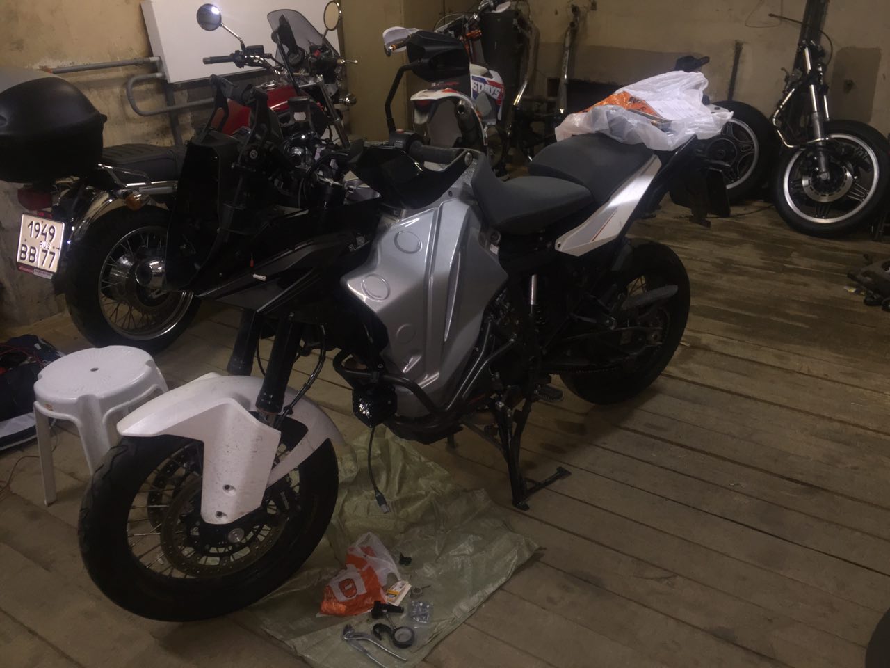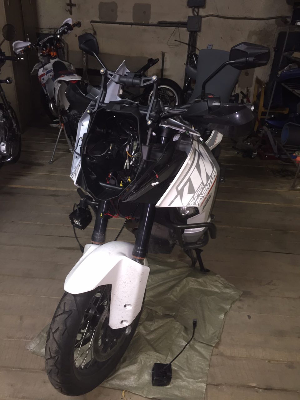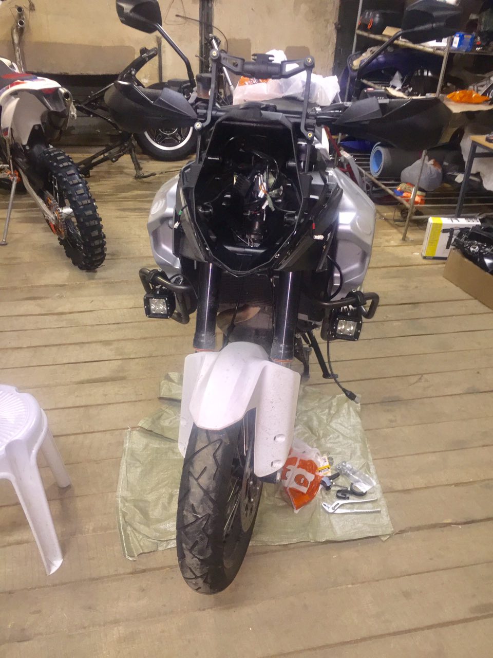 допфары переставил, плюс лампочки светодиодные на соплях были подключены, провода криво лежали, резисторы на зипках были - на винты пересадил, подрезал нижний пластиковый кожух, провел проводку через дырки в нем, продырявил пластик под панелью, вывел кнопку включения доп света в него. еще б навик подключил - но только заказал на луисе подготовку под нави, хз сколько идти будет.