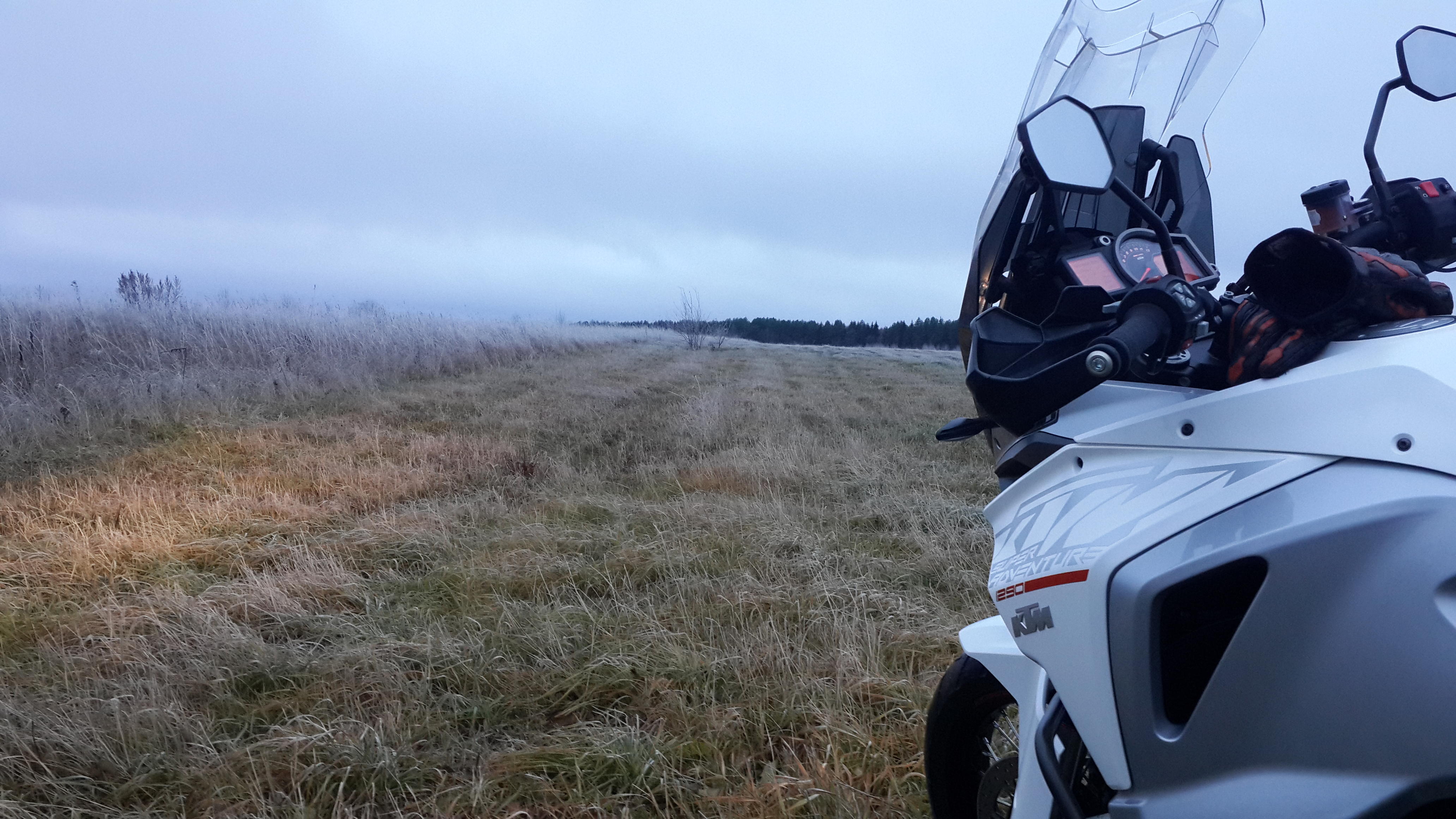 скошенное поле, вечер, иней на траве и температура -1...