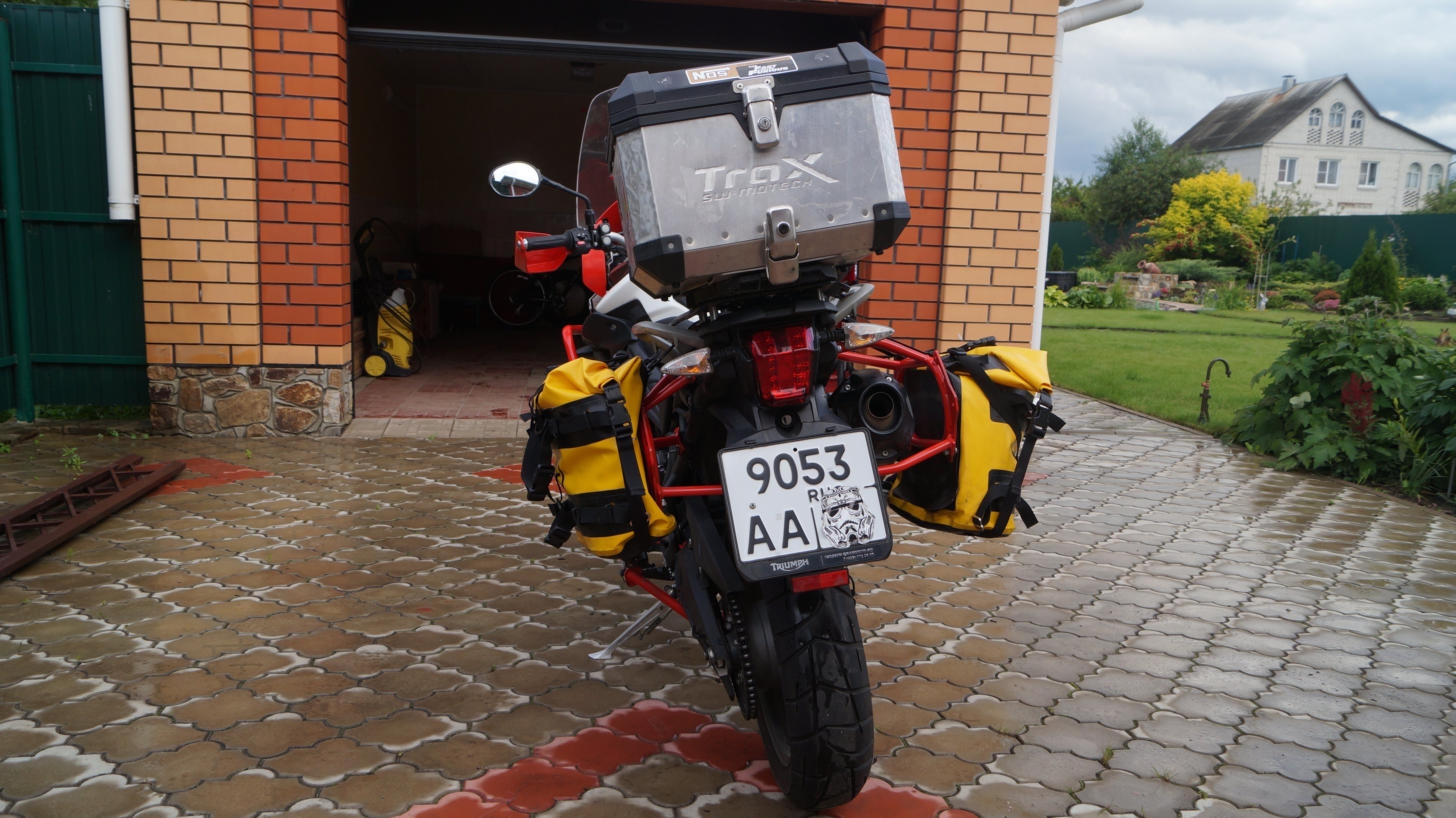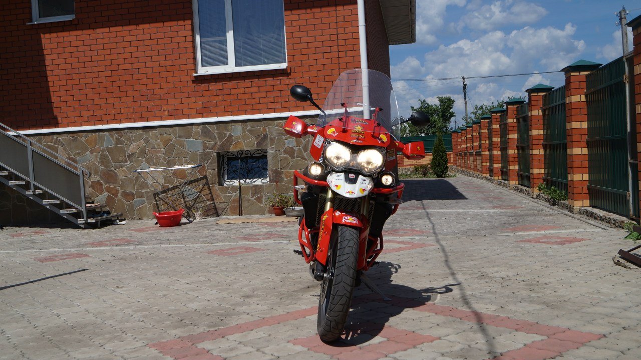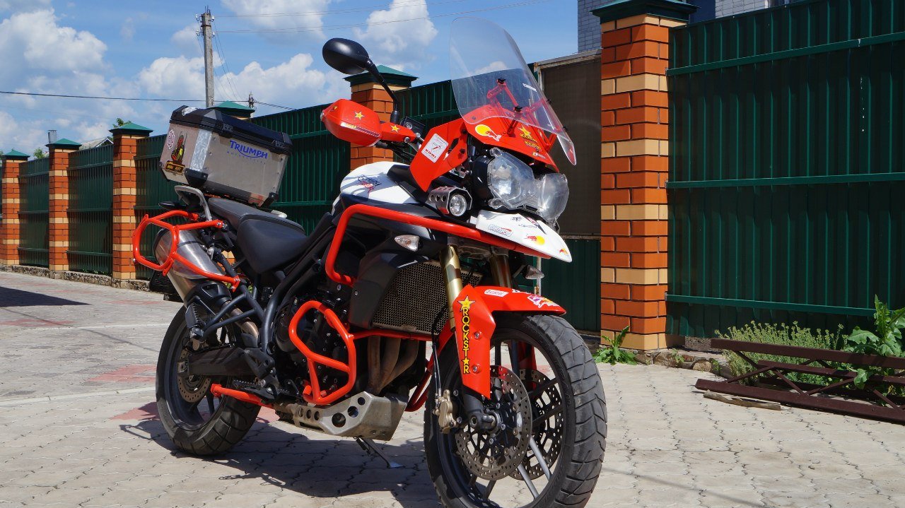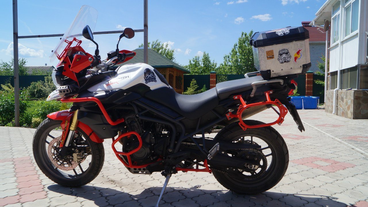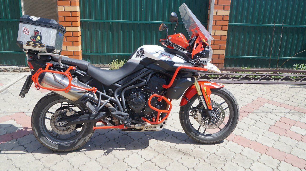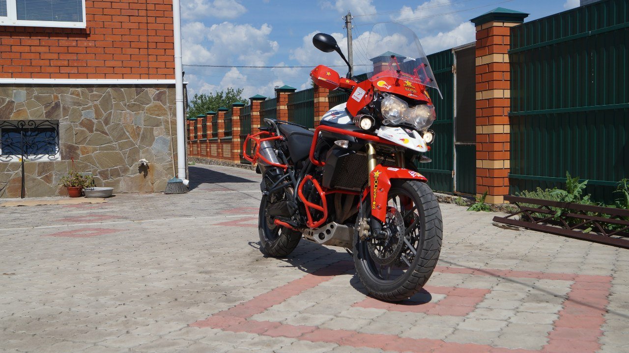 установлено много допов(зашита поддона,дуги верх+низ,боковые стойки под кофры (sw motech), боковые сумки (wolfman),центральный кофр (sw motech),высокое туристическое стекло,противотуманки,подогрев ручек,.причина продажи смена класса мотоцикла.