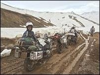 да... дорожка от Бейнео до погран перехода с Узбекистаном взбодрила, 87 км в стойке на ногах на Адв и довольная улыбка на лице при виде казахских погранцов.... но в небесной канцелярии масса шутников, и после "звонка другу" пришлось резко развернуться опять в сторону Атырау, обратно по этому навсегда убитому грейдеру и далее Бейнео - Атырао - Уральск, сейчас в Актюбинске в кстати приличной гостишке "Достан" и уйду на Кустанай. Сегодня в Уральской обл, был внезапно сбит дедом - перехватчиком мототуристов, который буквально за пять метров от меня от своего дома выезжая на главную успешно таранил в лоб.Деду не повезло, я успел выкрутить руль и дедок жив и здоров, чего не сказать о его стареньком VW, хотя правый боковой кофр остался у него в качестве трофея. Поратив четыре часа на все оф.процедуры, убедился , что хотя бы год дедок будет лишён возможности атаковать мотобратушек проезжающих аккурат напротив его дома, перепаковал шмурдяк и в путь. Всем удачи :)