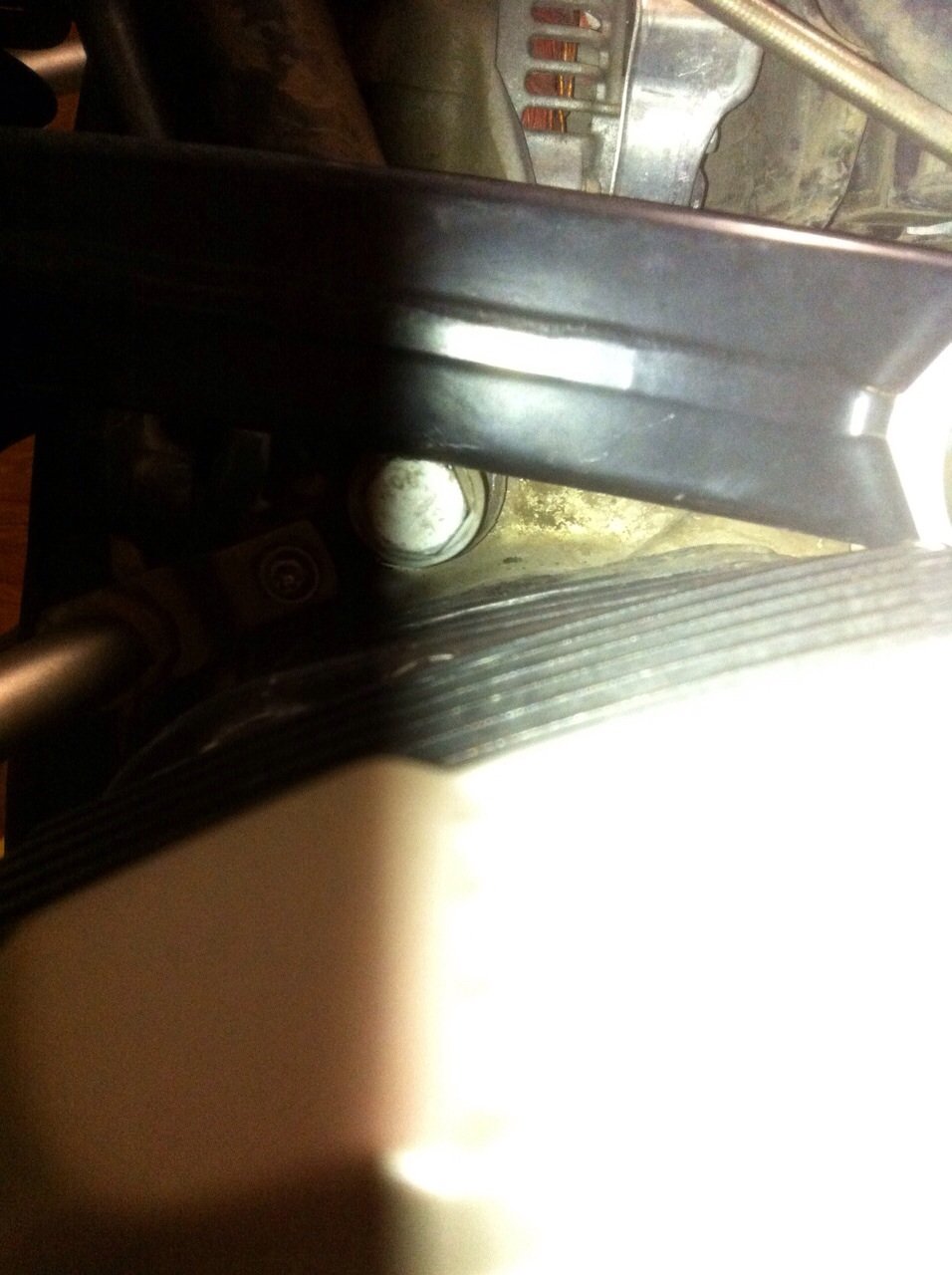Вроде, казалось, что вот, все уложено и осталось только "шить гвоздем" зжать пружину переднего амортизатора чтобы немного преподнять паралевер для свободного снятия одного из болта крепления рулевой колонки к двигателю, чего уж там, всегото каких то пару см и он поднимится, приступил к сжатию при помощи ремней и трещеток. Но как я нистарался, это блидво постоянно то рвалось, то закусывало, то даже слизало шестеренки на трещетке. Я был в отчаянии, я мудохолся с этими стяжками два с половиной часа, первый комплект ремня и трещетки пришлось утилизировать, второй комплект в котором ремня оставалось еще на разок всетаки стянул эту пружину и болт покорно вышел..Но каково было мое удивление, когда я достал этот блятский болт (с целью просто его переставить), что он стоял именно так как было нужно!!!! и небыло необходимости чото преподнимать, рвать, стучать итд, нужно просто было отвернуть гайку и надеть на этот болт крепление подрамника с последующим заворачиванием его в креплении.