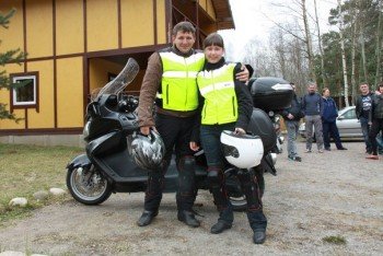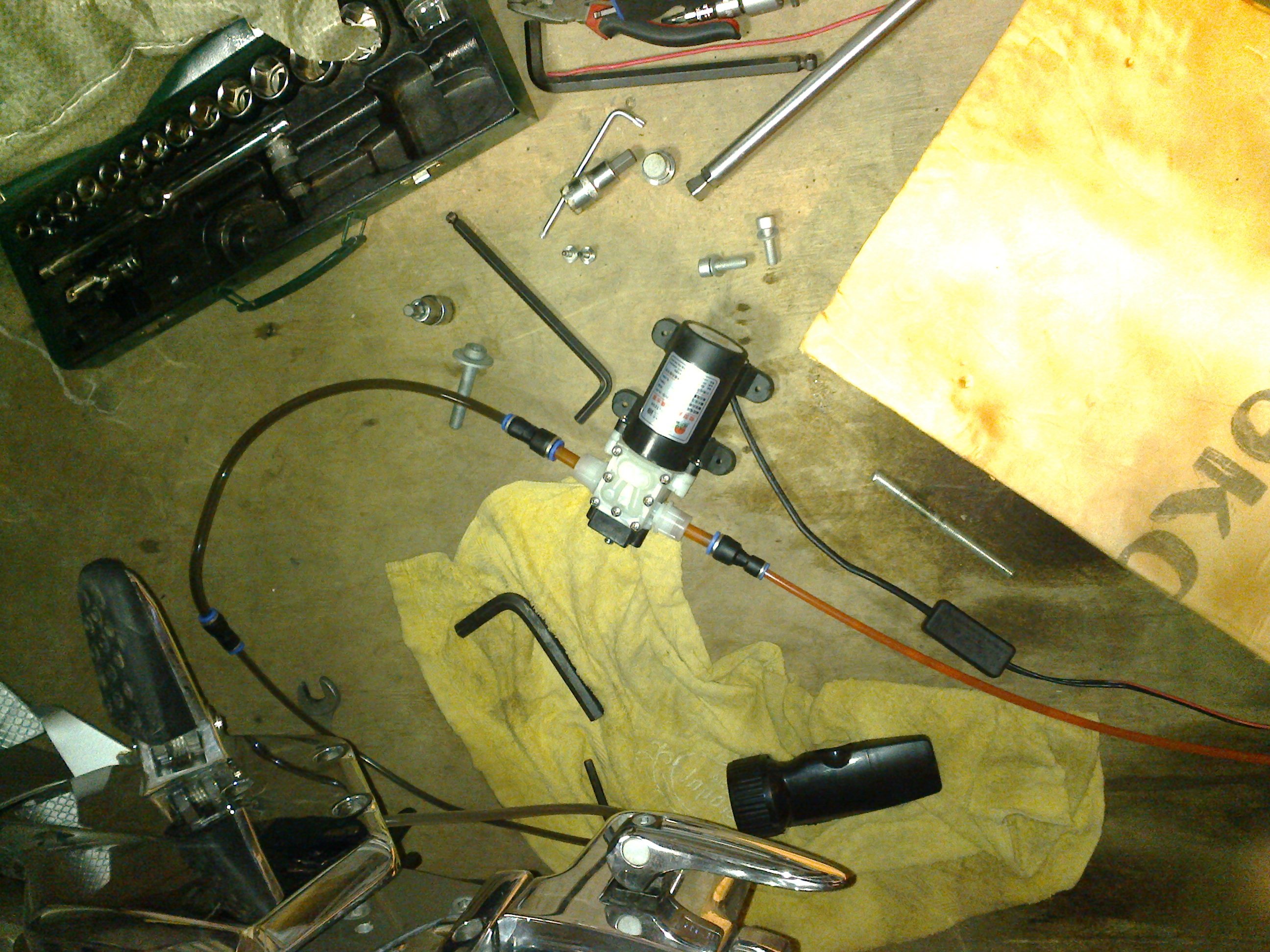 На следующем этапе мопед поставлен на боковую и обратным ходом залито 600 гр.