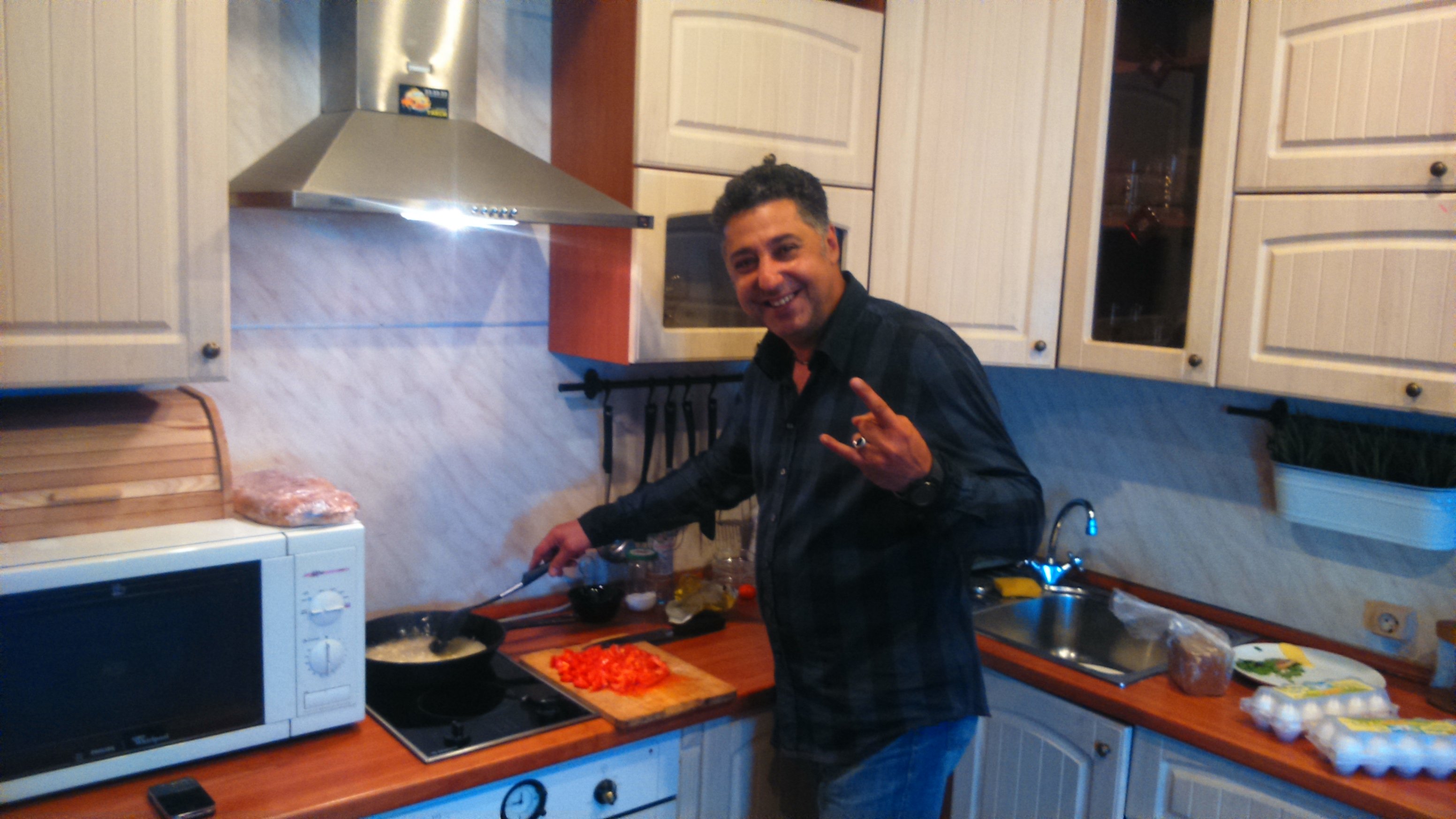 Это Саша из местного байкклуба готовит нам перед дорогой обед)