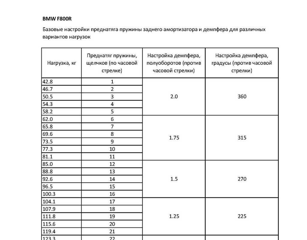 Предварительное сжатие пружины(увеличение жёсткости) позволяет сохранить дорожный просвет(ход амортизатора вниз на сжатие) при увеличении загрузки. Определяется легко по положению пучка света от фары. Посадил пассажира - зад присел - фара светит в небо - поджал пружину. Регулировка демпфирования (ход амортизатора вверх) служит для гашения колебаний пружины. Увеличение жёсткости пружины требует пропорционального увеличения степени демпфирования.