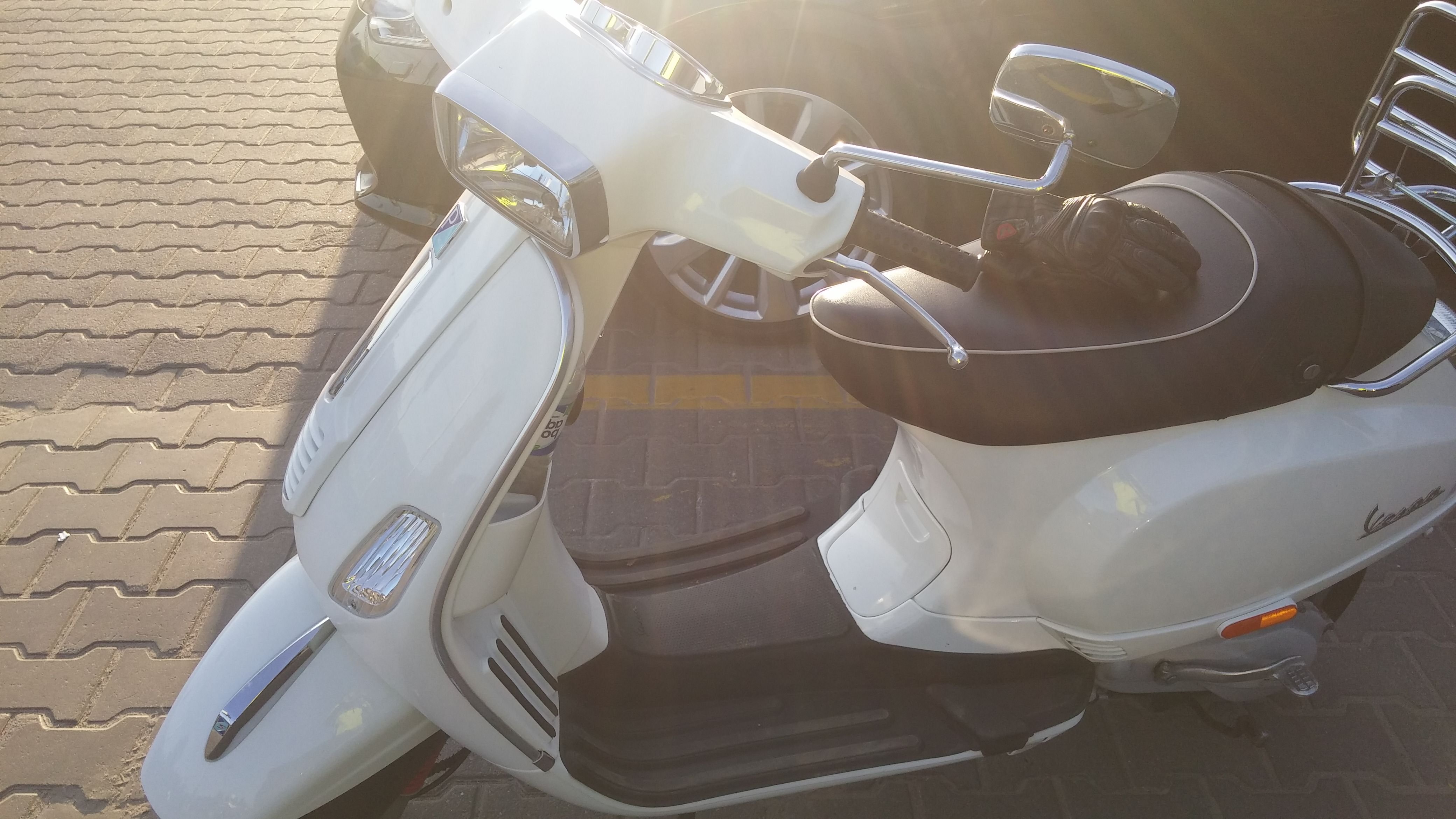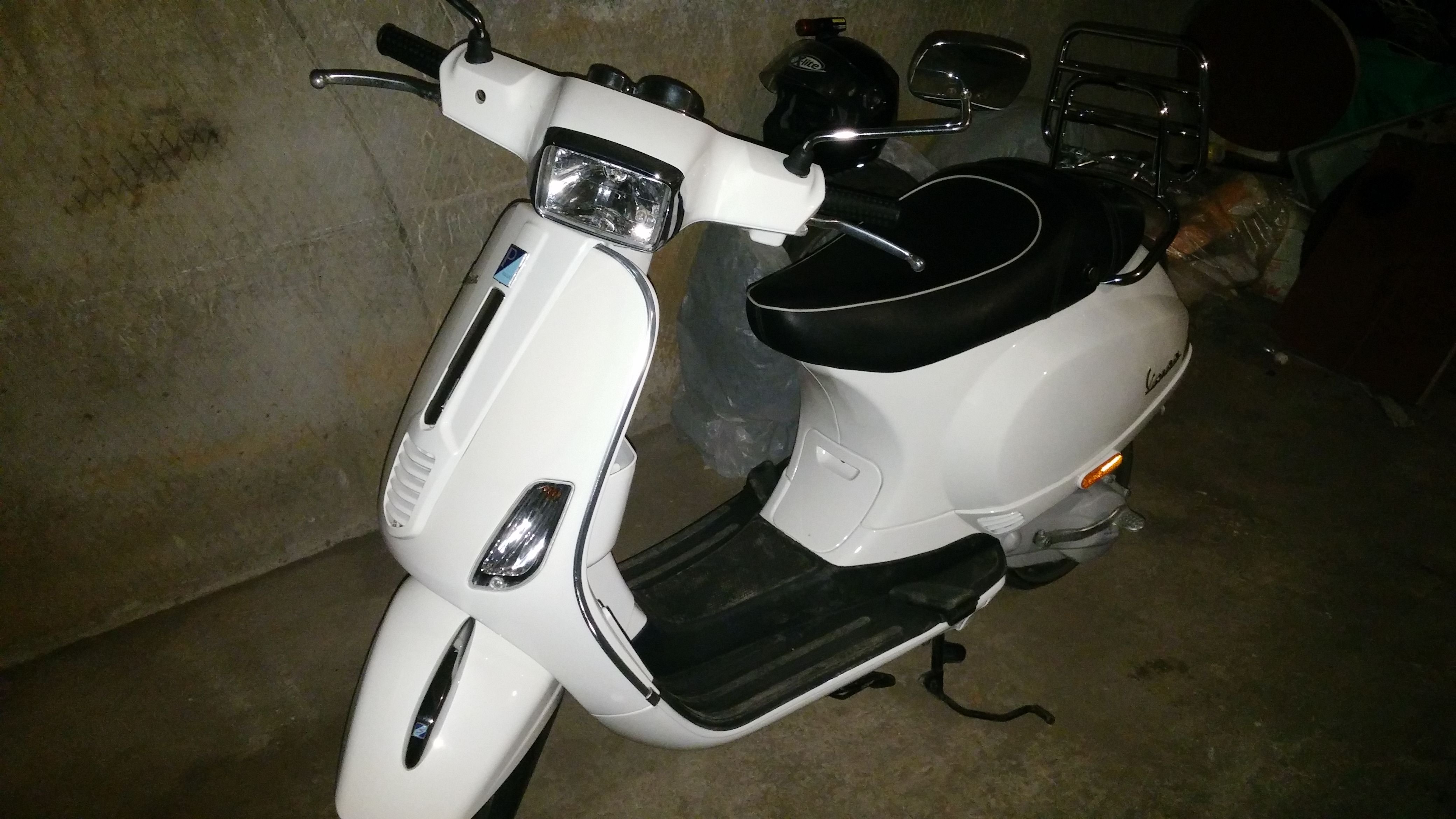 Продаю скутер Vespa s50 2012г.в., пробег 1800км, цвет белый, объем 50см/куб., 2 такта, есть ввозной документ - прибыл с финляндии. Состояние более чем хорошее, все работает как нужно, из тюнинга стоит хромированный родной багажник и резиновый коврик на полы.