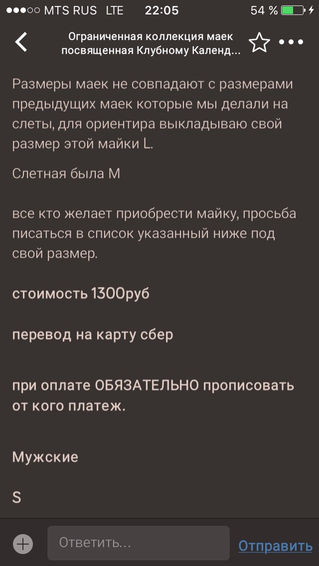 Убедительная просьба не трогать список, просто пишите сообщение с просьбой добавить в размер