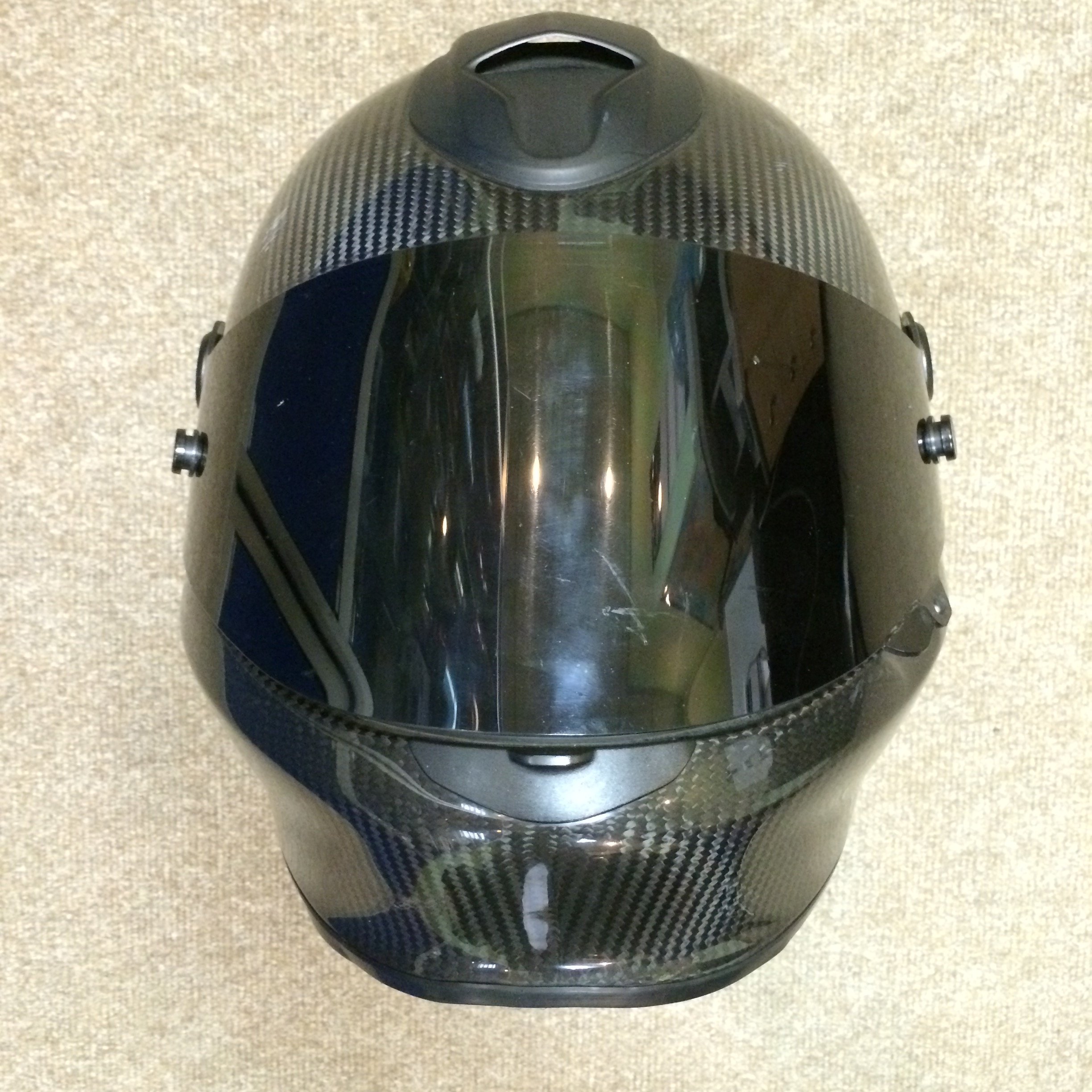На лаке есть пару мелких царапинок- последствия неизбежного падения с мотика на асфальт. В комплекте 2 визора - тонированый и стандартный.