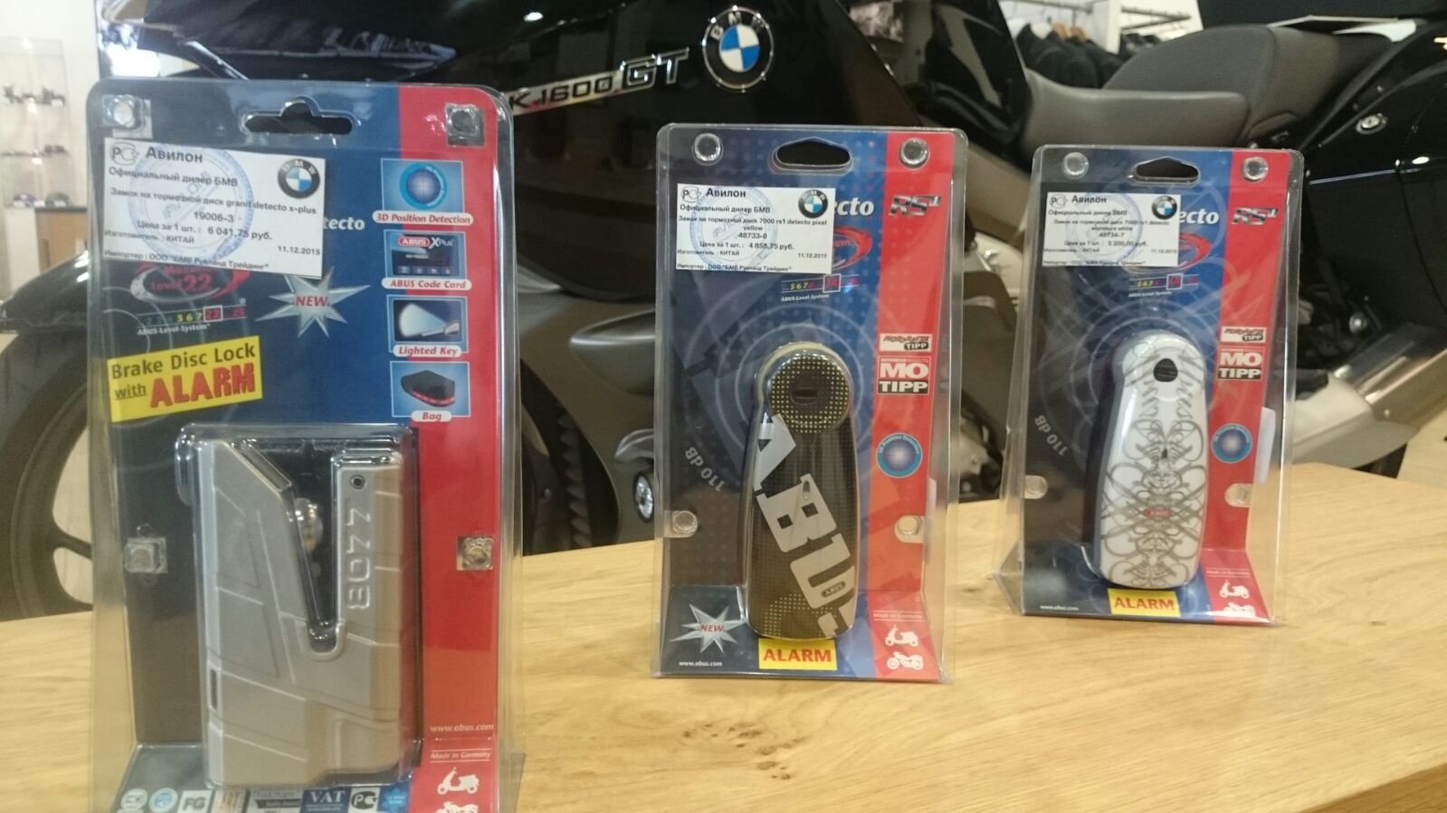 1. Замок на тормозной диск Abus 6 041.75 (серый), 4 858.75 (желтый), 5 200.00 (белый).