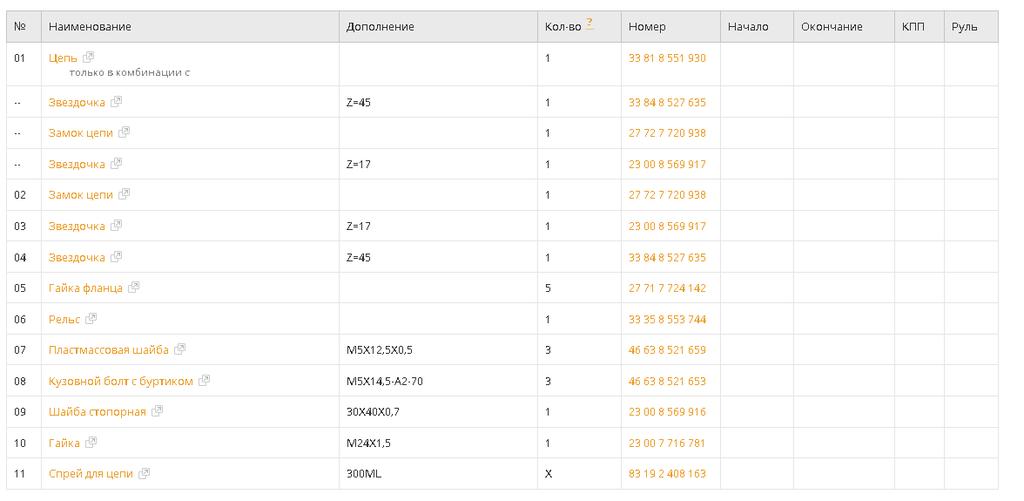 Был бы благодарен парткодам оригинальной цепи и звезд. Или неоригинал лучше? Буду рад любым рекомендациям.