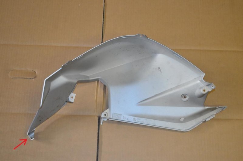 Левый пластик фальшбака, который состоит из двух частей. На одной из ней есть штырь, который для фиксации пластика втыкается в раму мотоцикла. Вот именно он у меня отломался, а для его восстановления нужны фотографии, желательно с линейкой, чтобы понять его расположение и длину. Иначе если сделать на глаз, то отвалится быстро.