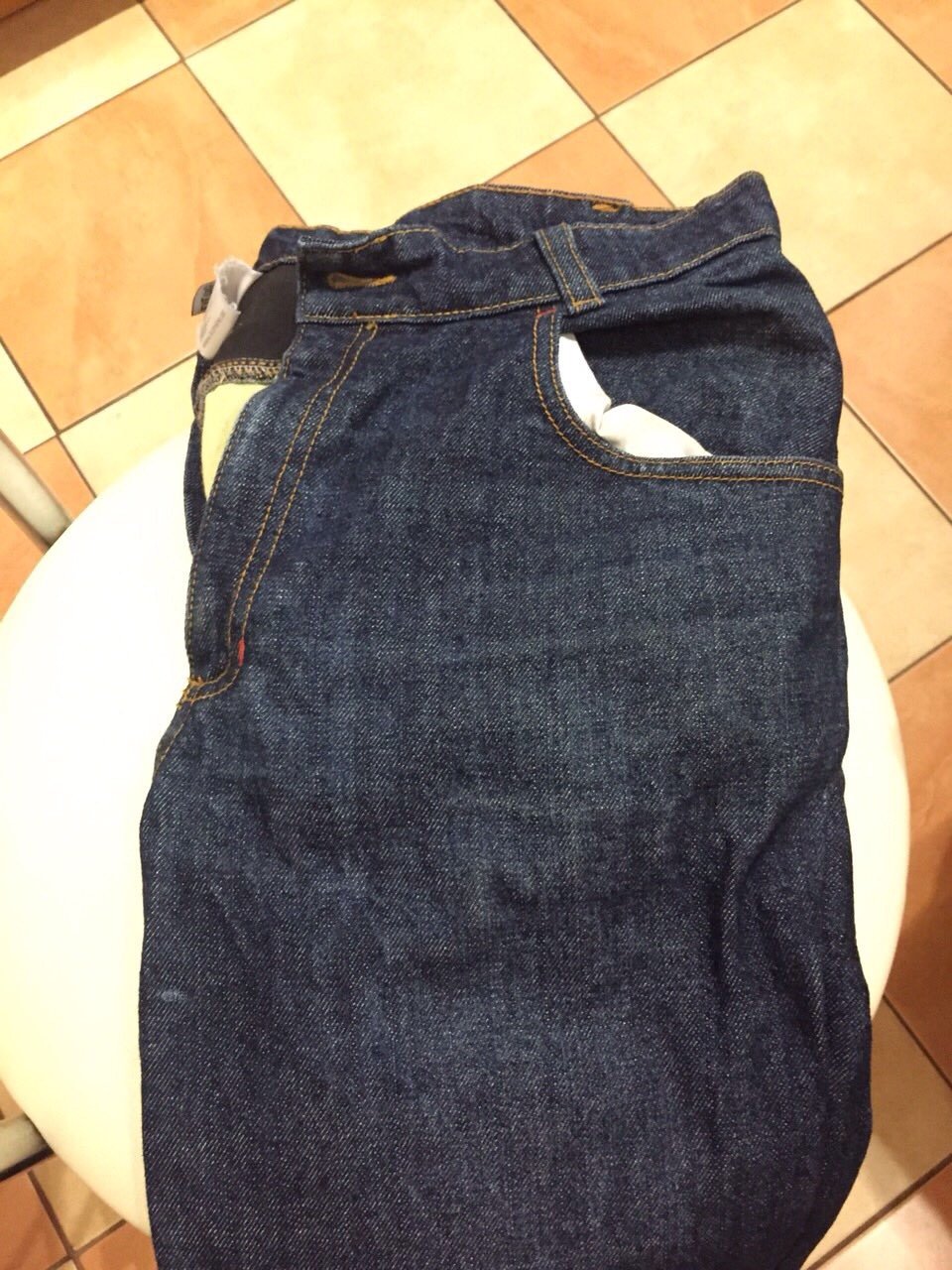 Джинсы хорошо сидят. На жопе резинка. Ездил в них мало. Наколенники и бёдра. Нестираемая подкладка.