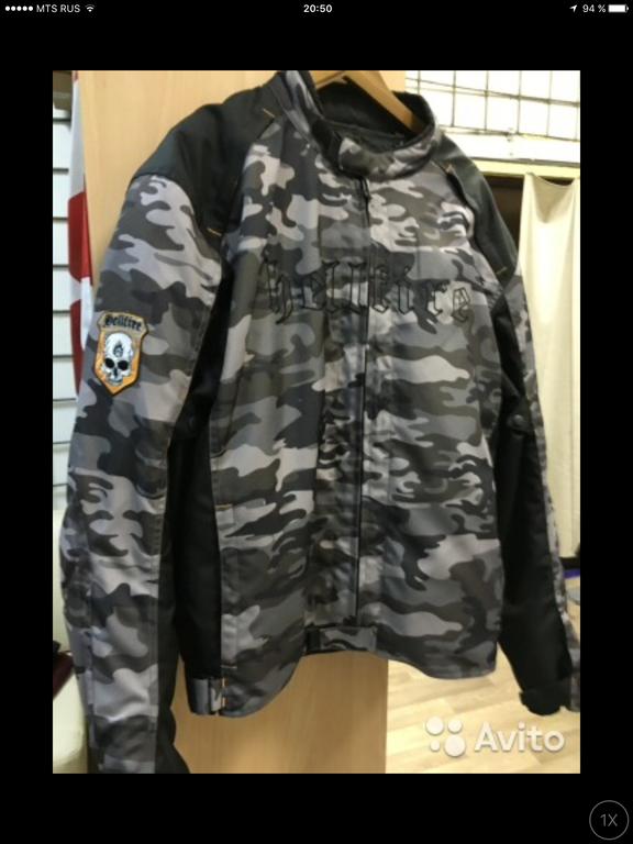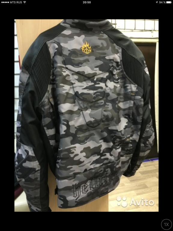 Куртка куплена в PoloMotorrad в Германии за 200 с копейками ойро, цвет камуфляж, есть подкладка отстегивающаяся на холод, вентиляция, защита локти, плечи, карман для спины, довольно длинная, размер 60, реально 58