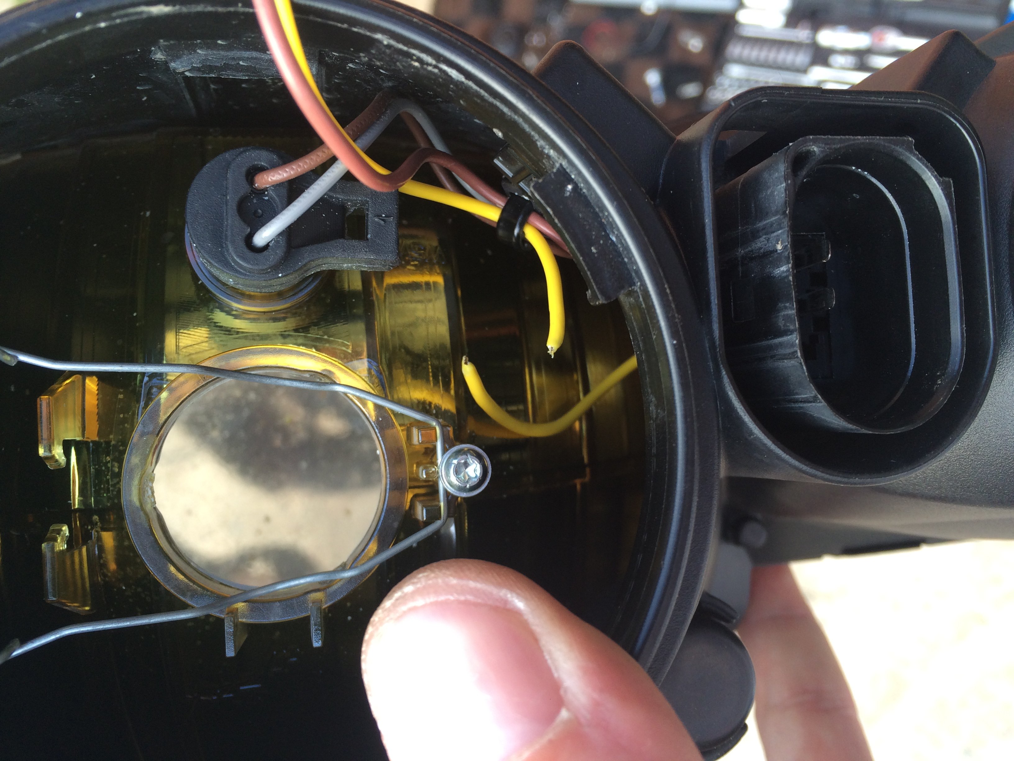 Вооружившись подручными проводками начинаем искать причину неисправности. На лампу не приходит + внутри фары.