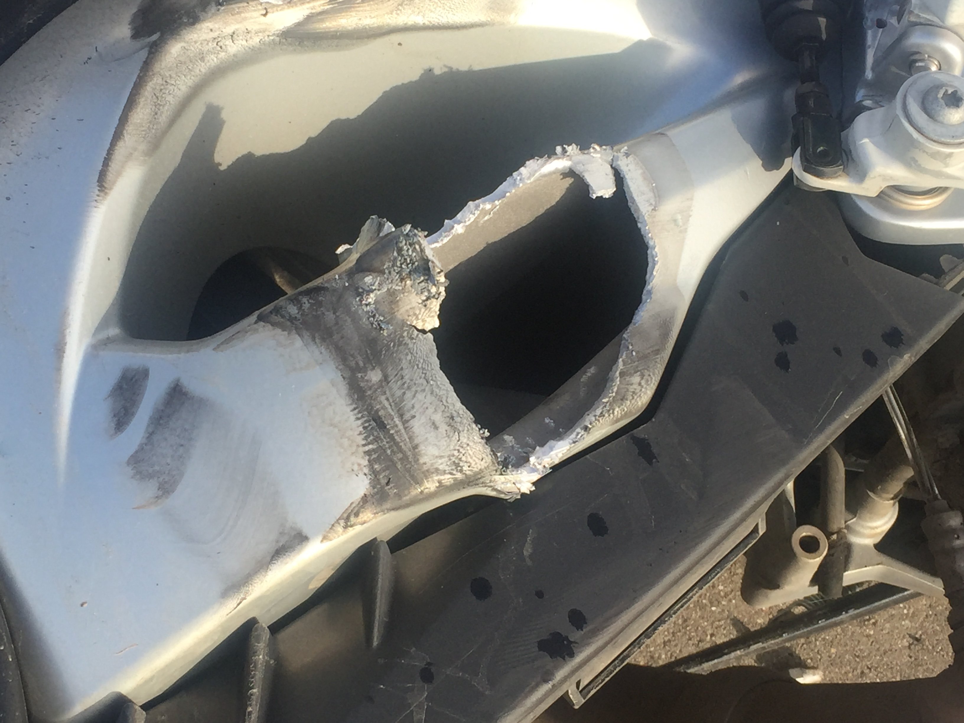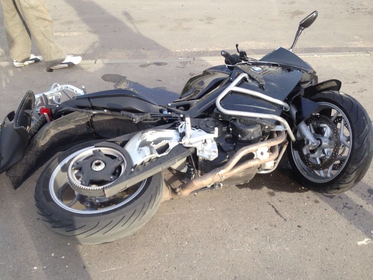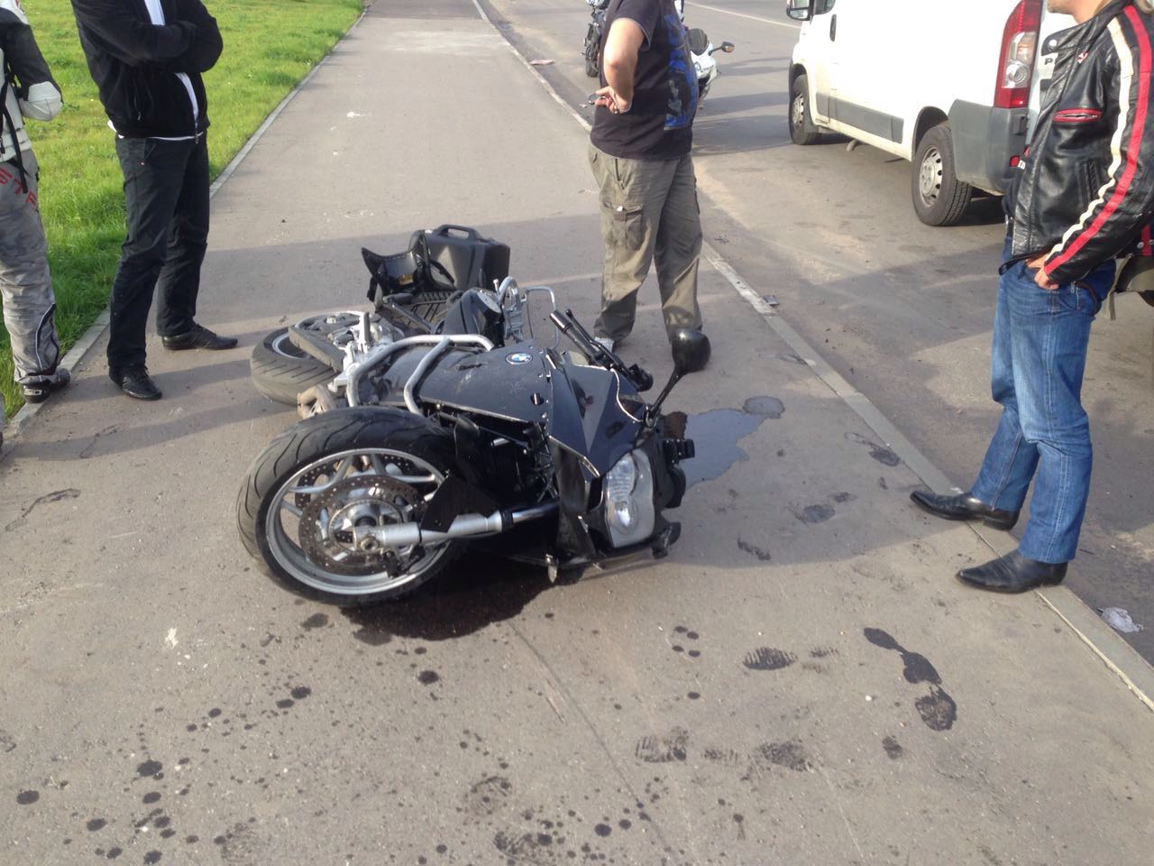 Итак, как все начиналось: 06.09.16 часа в три дня еду по работе у себя на Востоке Москвы, а именно по Живописной улице. Стартую со светофора на перекрестке с Измайловским шоссе в сторону Щелчка. Помню, что дорога стала односторонней, поэтому собираюсь уходить в самый левый ряд, краем глаза ловлю знак одностороннее движение и открываюсь дальше. Следующие днйствия заняли секунд 5.....замечаю, что белый рендж впереди творить что-то непонятное и начинает перестраиваться в мою сторону, я еще левее, он собирается разворачиваться и нажимает на газ.....Столкновение и успев привстать на подножках лечу метров 20-25 и продолжаю кувыркаться....Я остаюсь в сознании, болит сильно правая нога, но все на месте....Дальнейшие приключения со скорой и в больнице я опущу...Вечером следующего дня я был уже дома с рваной раной под коленкой, ушибами мягких тканей и опухшей ногой. А, ну да, еще и с затоталенным мотом...