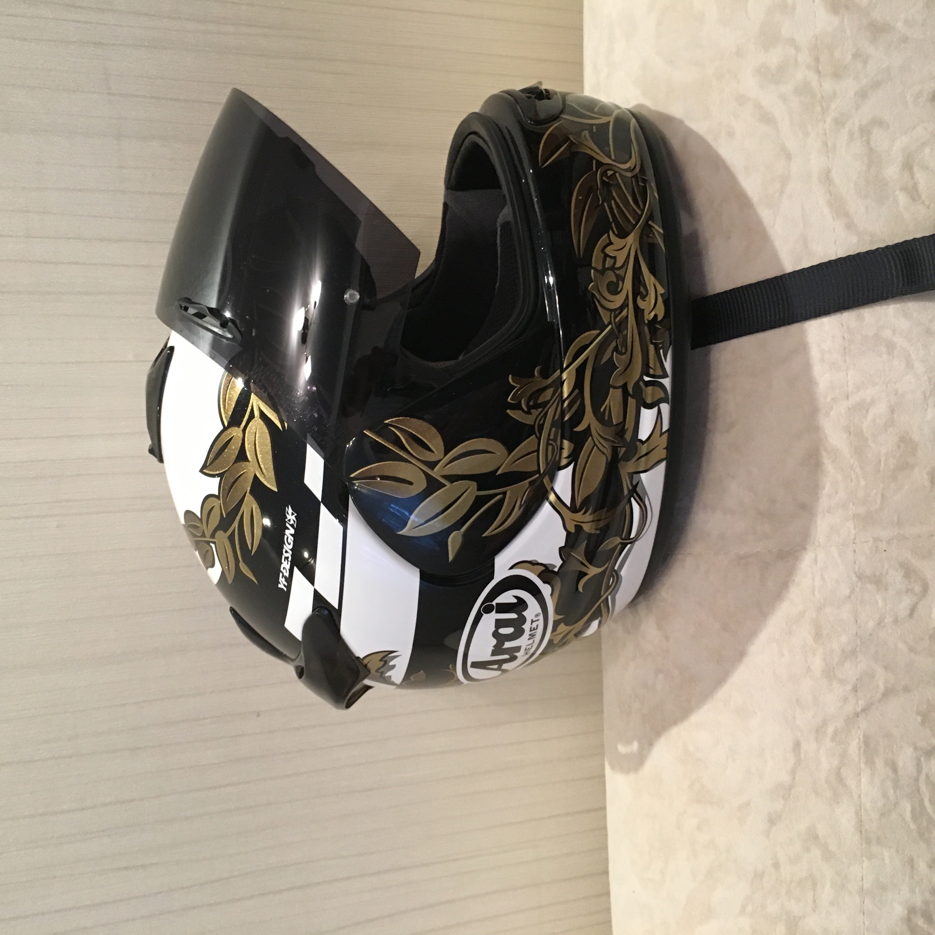 Хороший шлем, но вот эти лепестки золотистые на чёрном фоне((( Это так и было заводом предусмотрено или сам нааэрографил?