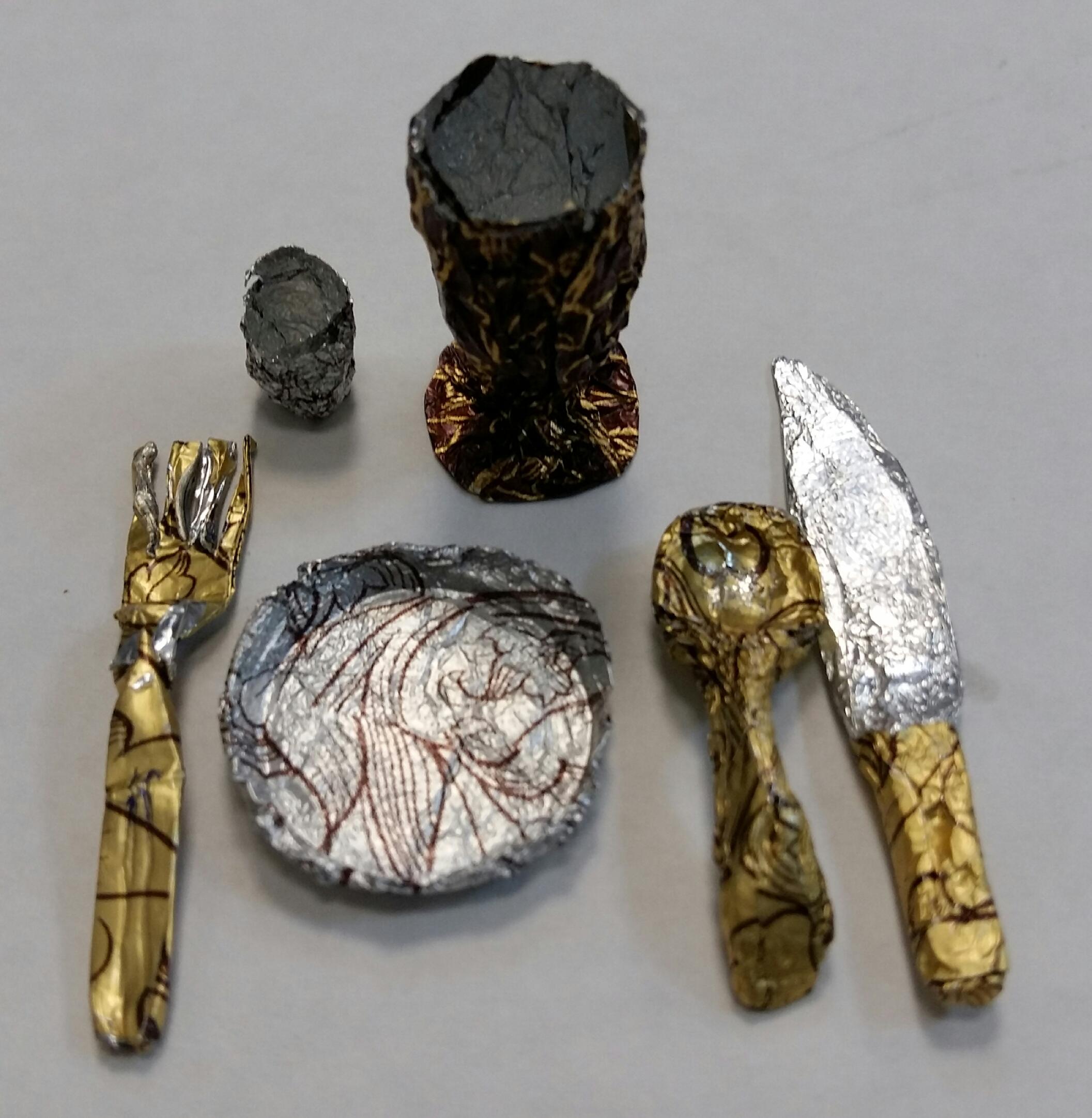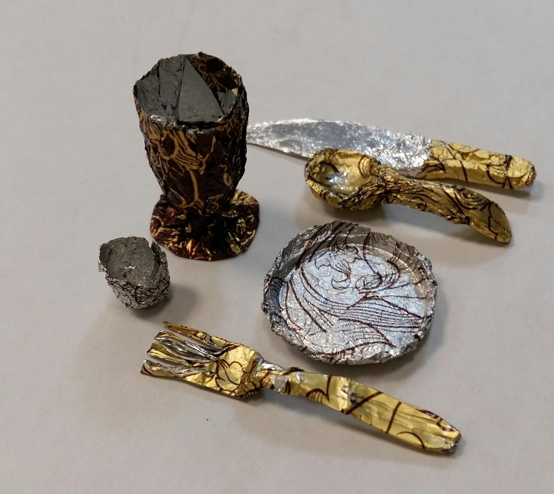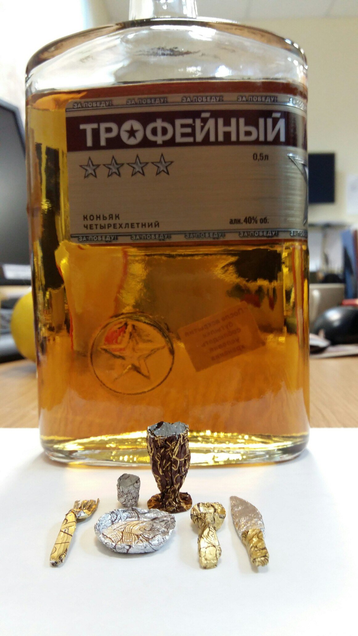 Вооот, пока пили и поздравляли мужчин, скрутила из золотинок конфетных посудку...