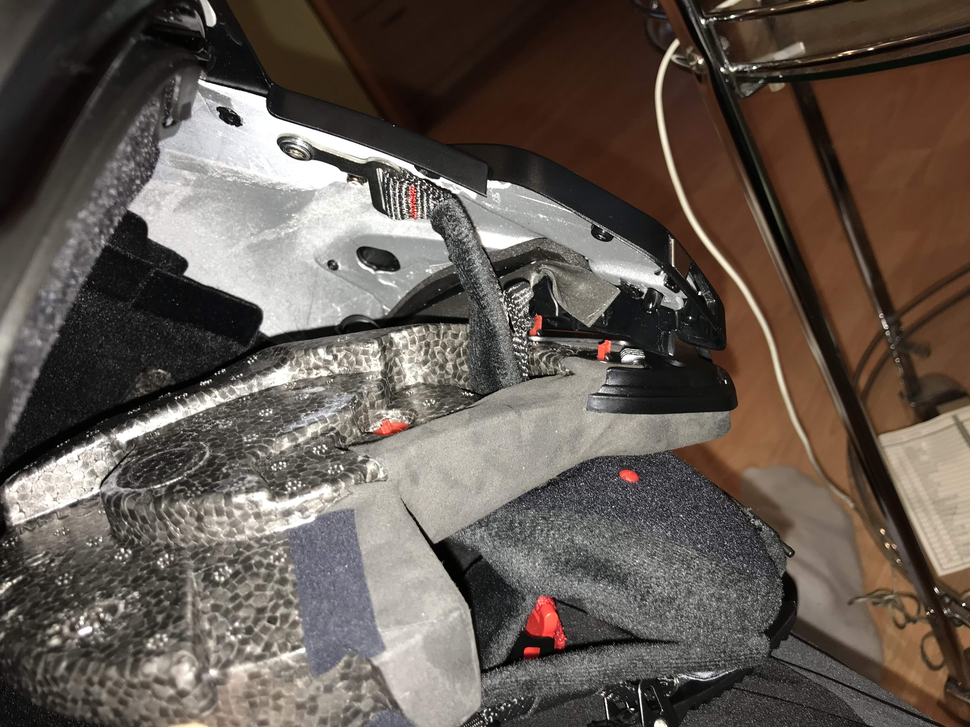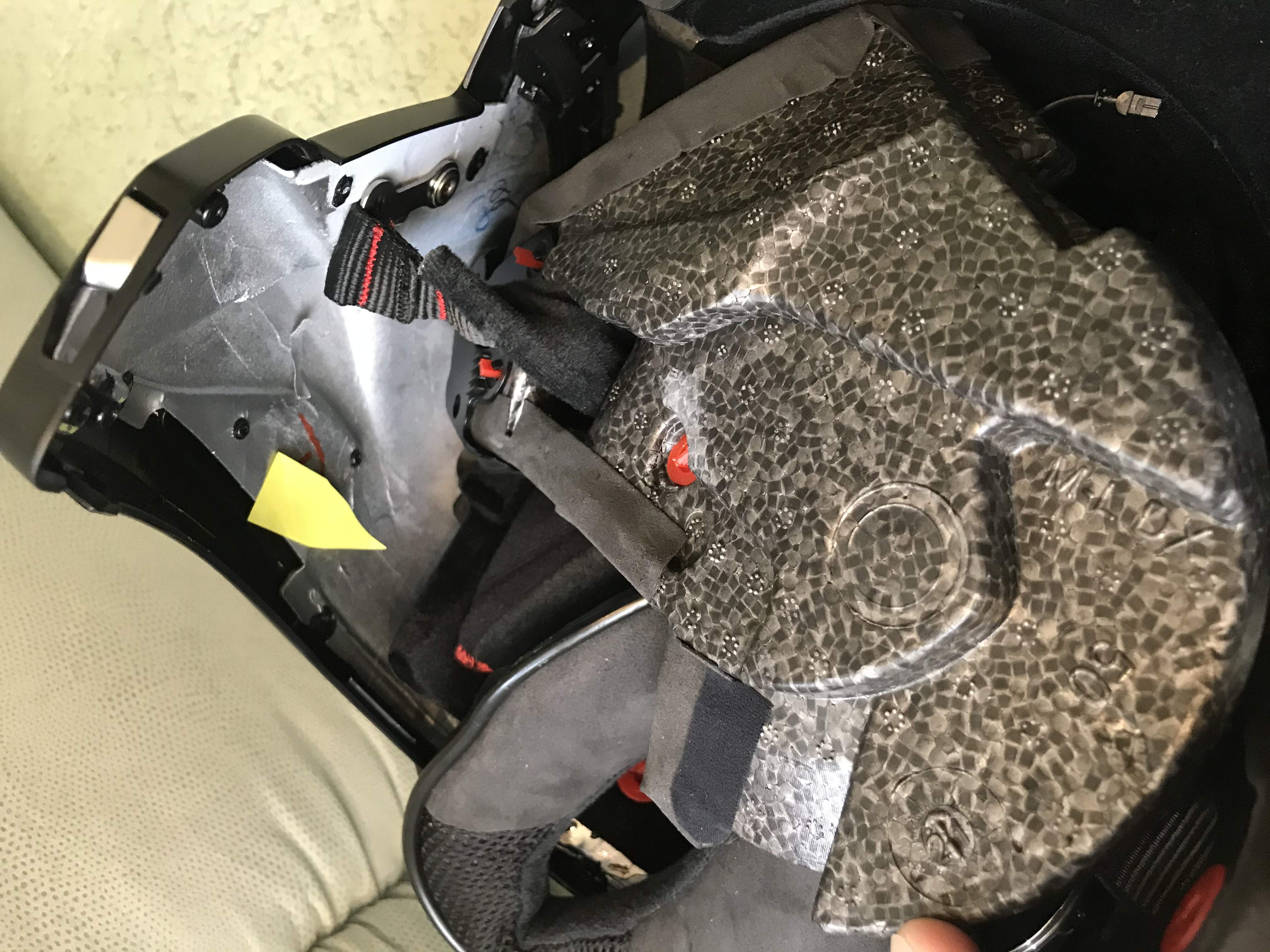 При снятии щеки (любой) открывается легкий доступ к затылочной части шлема, где есть полости для аккума (показал на фото желтой стрелкой).