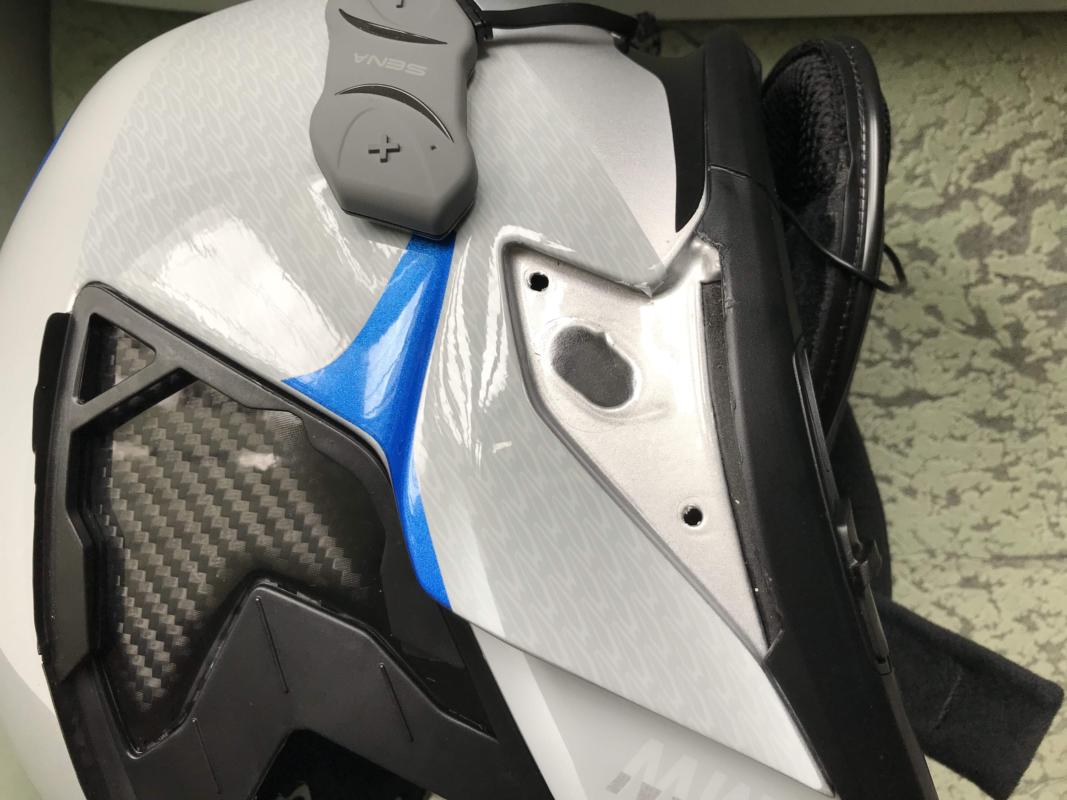 Аккум легко ставится в полость на задней части шлема, заглушку вообще не откручивал, просверлил отверстие в заглушке для прохода разъема 5 мм и прилепил такую Сену на заглушку сверху. Не усложняйте себе жизнь ))
