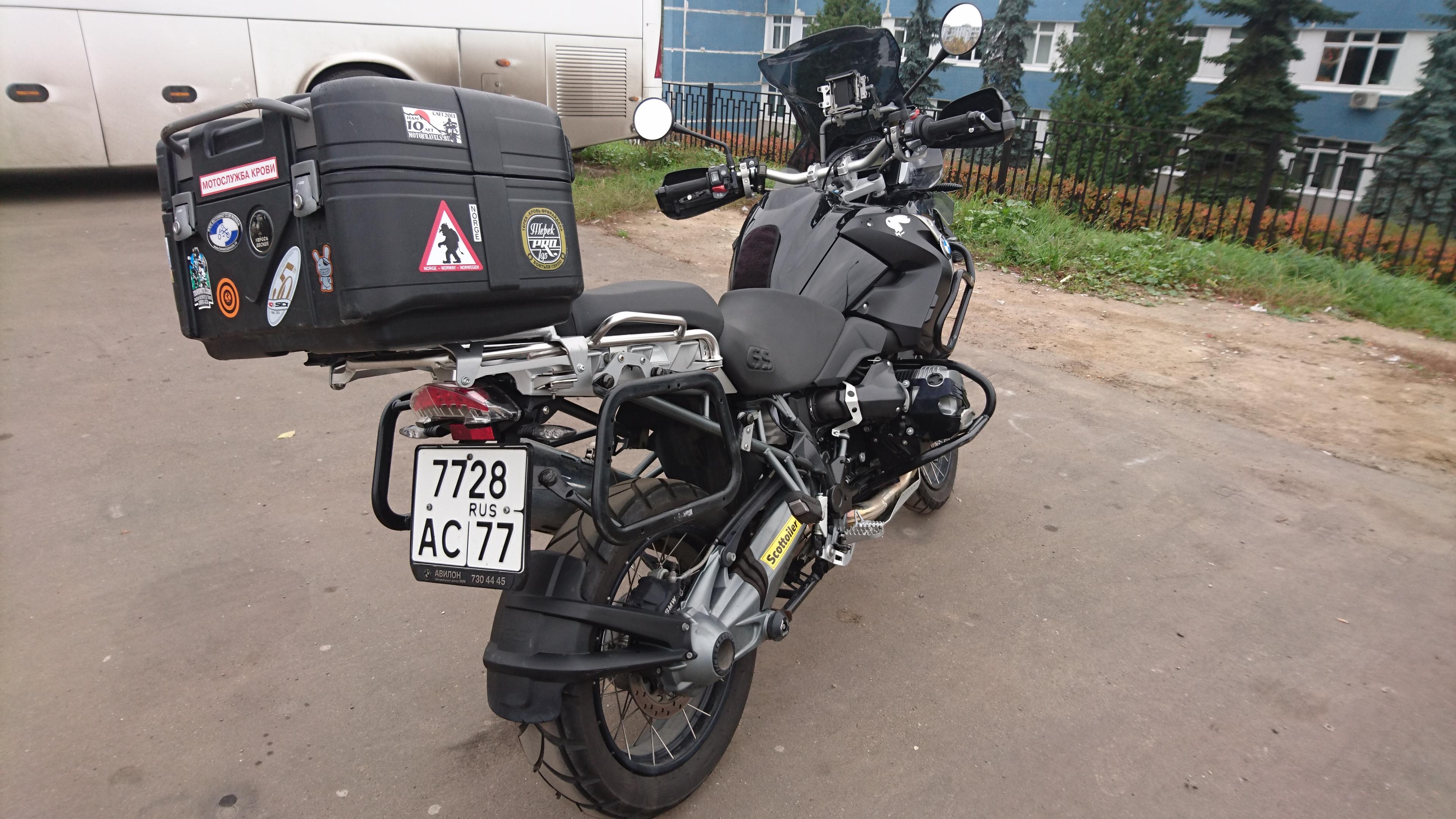 В подарок сумка на бак Turatech, задний кофр H&B Gobi 42L, навигатор Garmin Zumo 660.