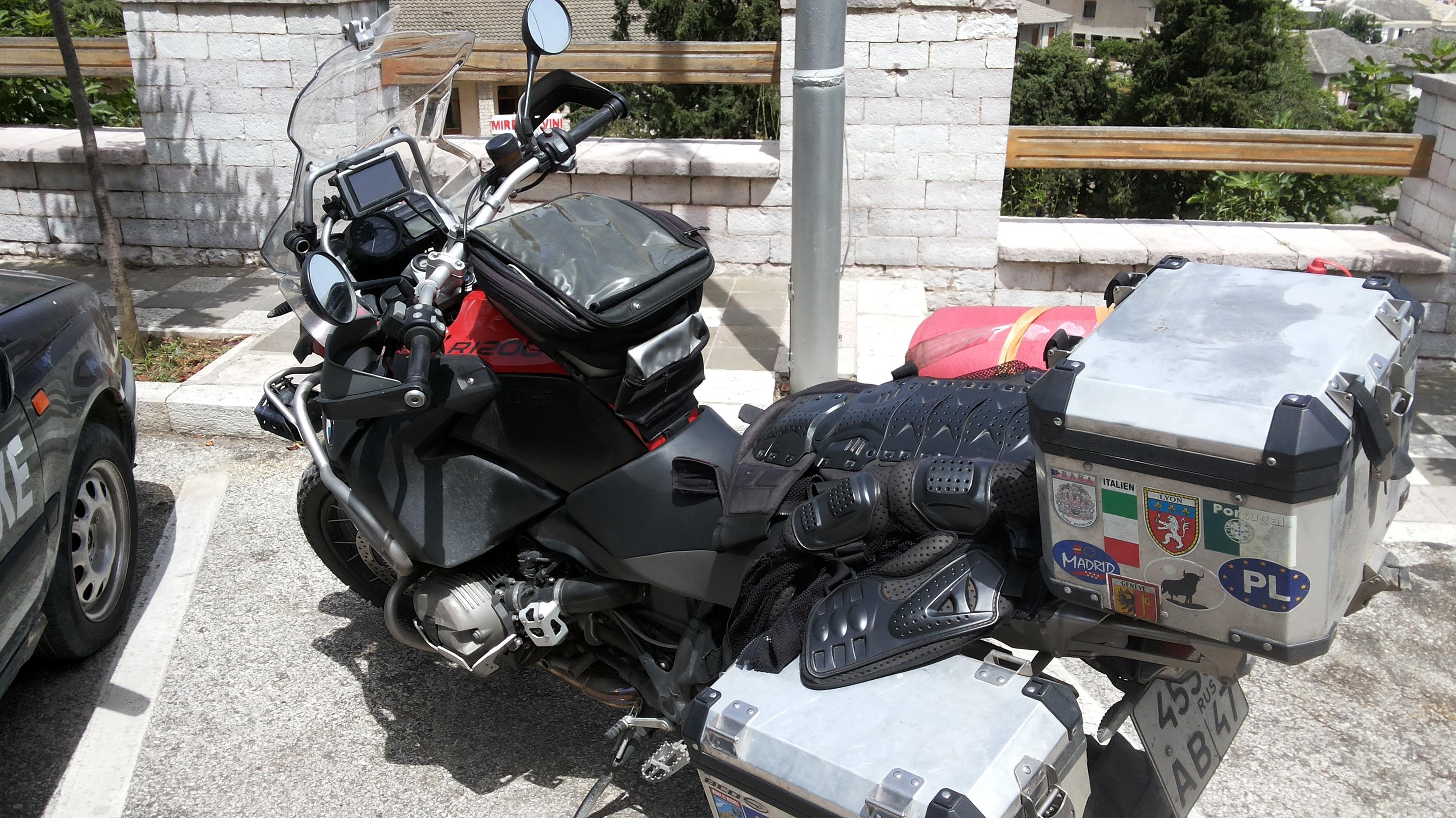 Набачная сумка, навигатор ZUMO 660 в антивандальном крэдле, дефлектор на ветровое стекло, доп. розетка 12 в, дуги, защита картера, защита тормозного бачка, защита рамы от ног, карбоновый подкрылок, удлинитель переднего крыла, расширение подножки, дополнительный свет, чулки на вилке.
