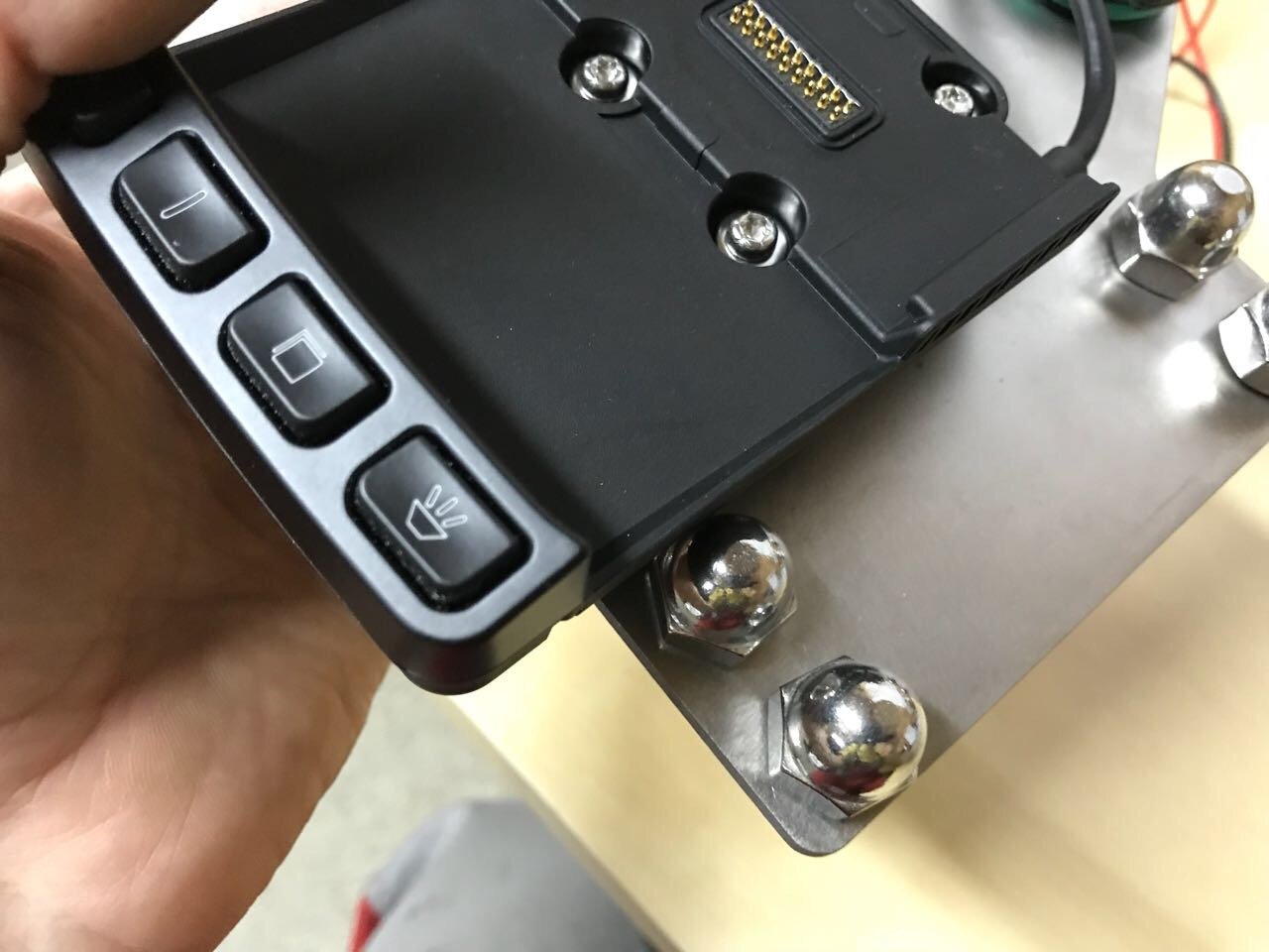 Болт в клипон предполагает шар , цангу и крепление кредла. Вся вместе конструкция отодвигает навик от руля намного дальше. Что опять не удобно и чего хотел избежать. И вот как раз такая конструкция и закрывает ключ.
