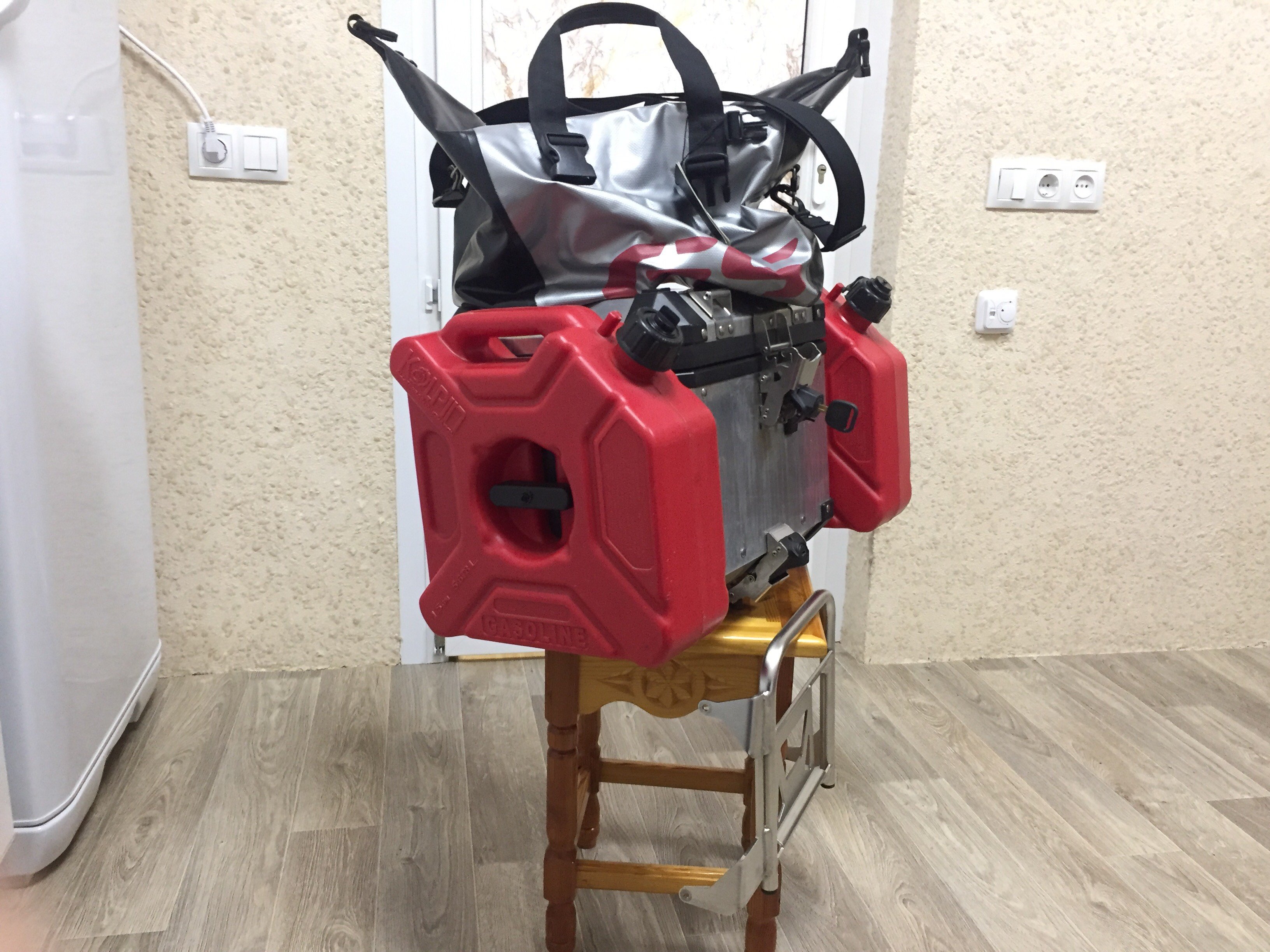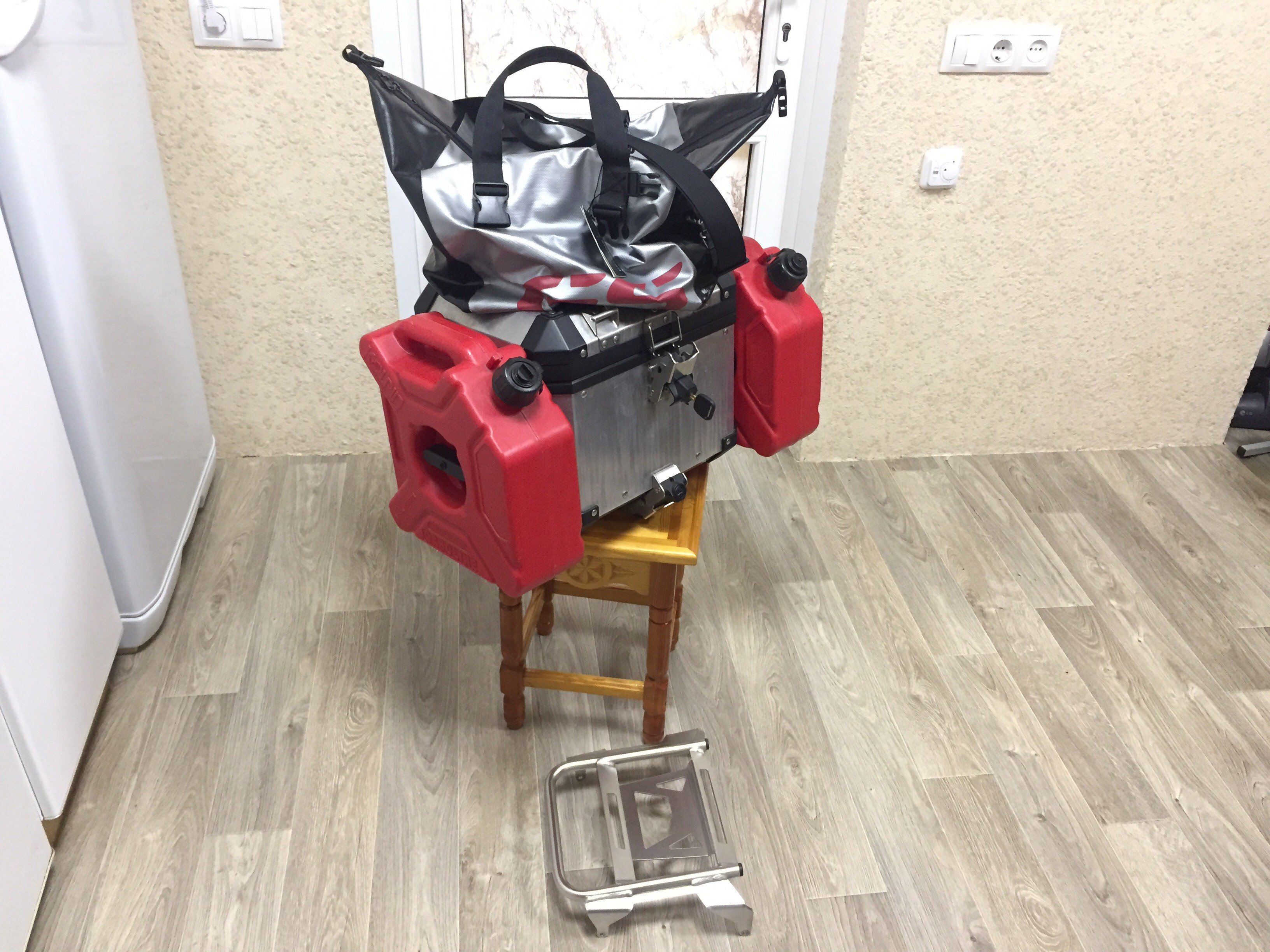 Топ кейс, Спинка для пассажира, Две личинки с ключем, Новая сумка в топ кейс, Площадка крепления топ кейса, Канистры с креплением Колпин две штуки, Все в Идеальном состоянии, За все 39000 рублей