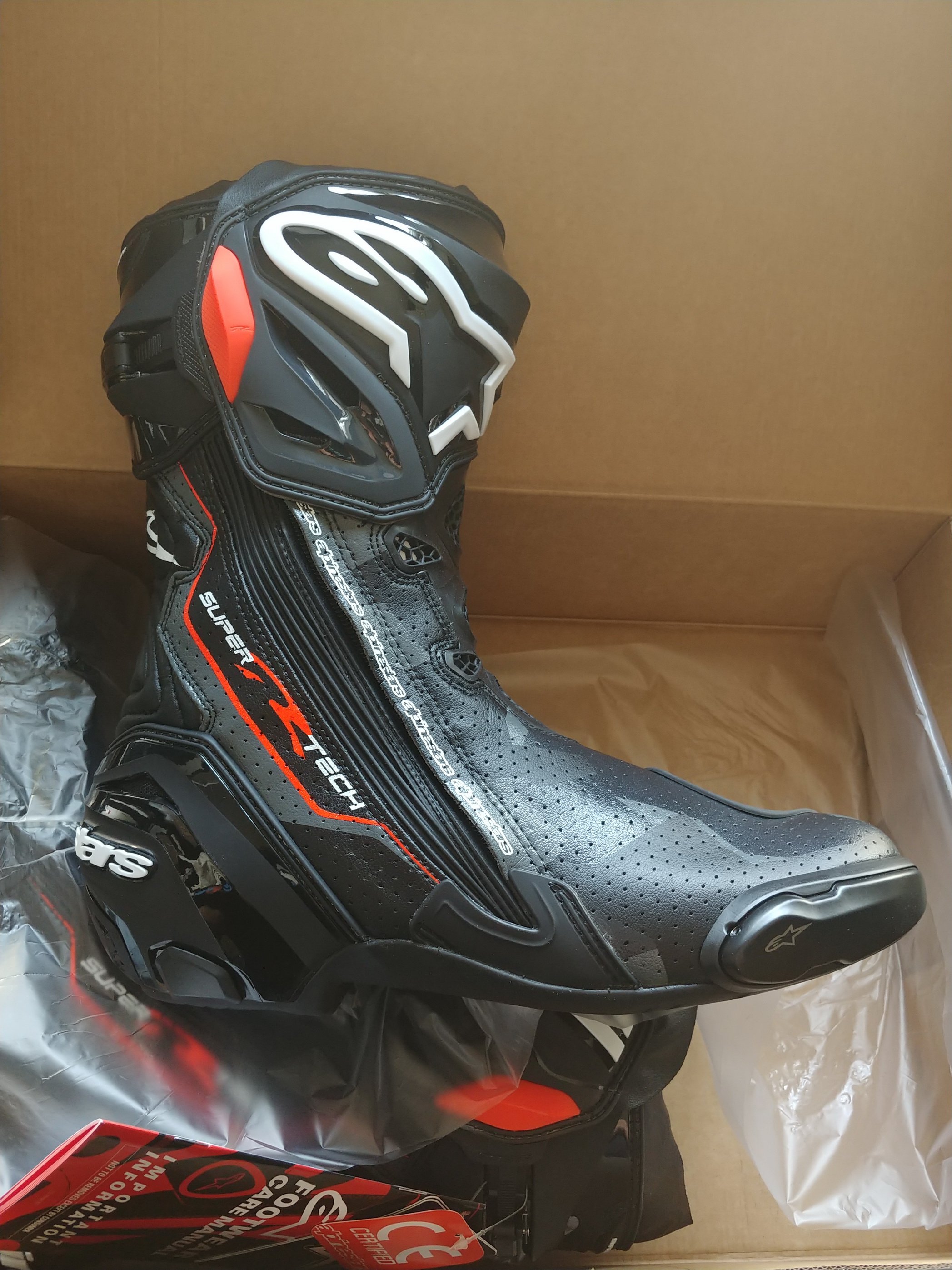 - боты Alpinestars supertech R в камо расцветке + перфо (45 разм - идут 1/1 как гражданская обувь, остальные мне налезали только 46) - 26 000 ₽ (в Россию этот цвет не возят только унылые черные и белые, так что ориентируемся на цену с офсайта + доставка за которую отдал 140 $)