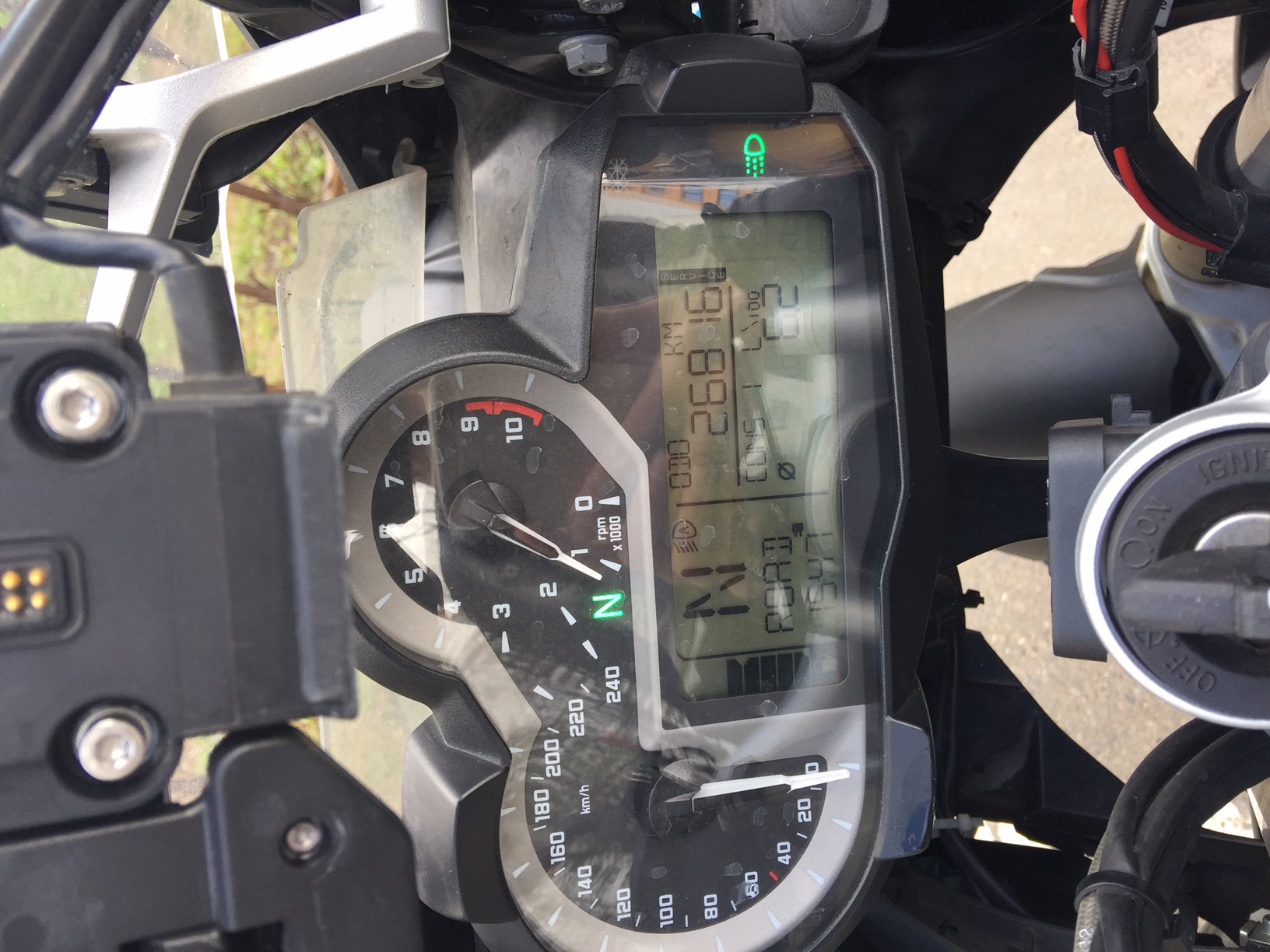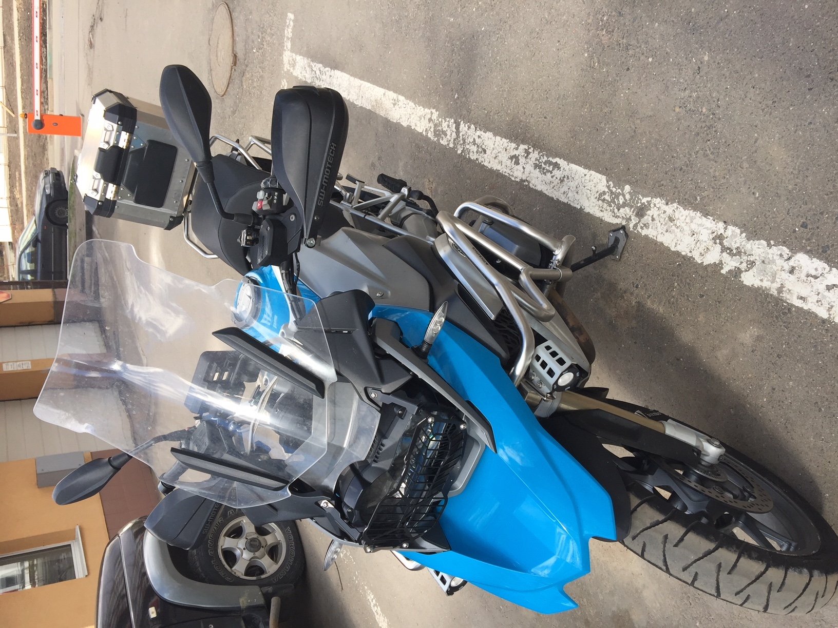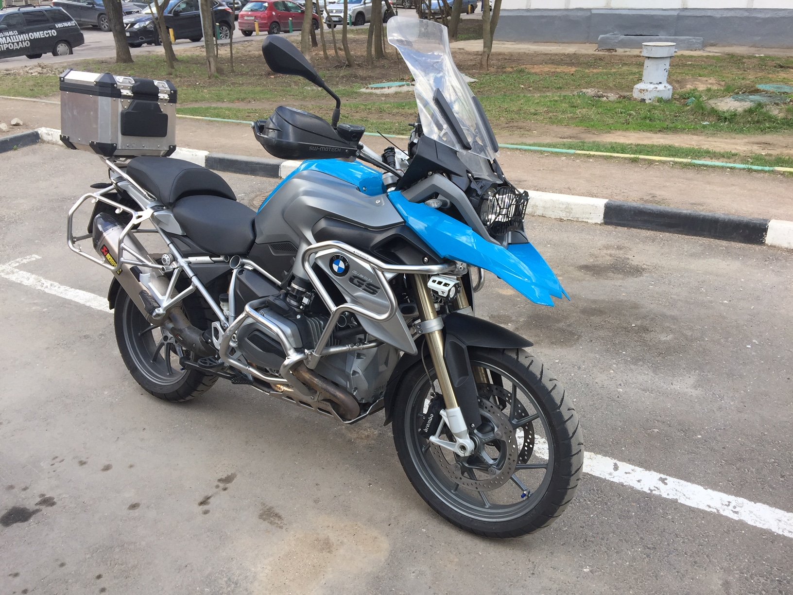 После покупки осенью 2016 г. ездил на мотоцикле один сезон по московскому асфальту. Все опции как на фотографиях. Защита (дуги), 3 кофра, сумки для кофров, доп.седло Touratech (низкое), ящик для инструментов, глушитель Акрапович, навигатор V, доп. фары, защита картера и тд. Два комплекта резины. Москва. 885 000 руб.