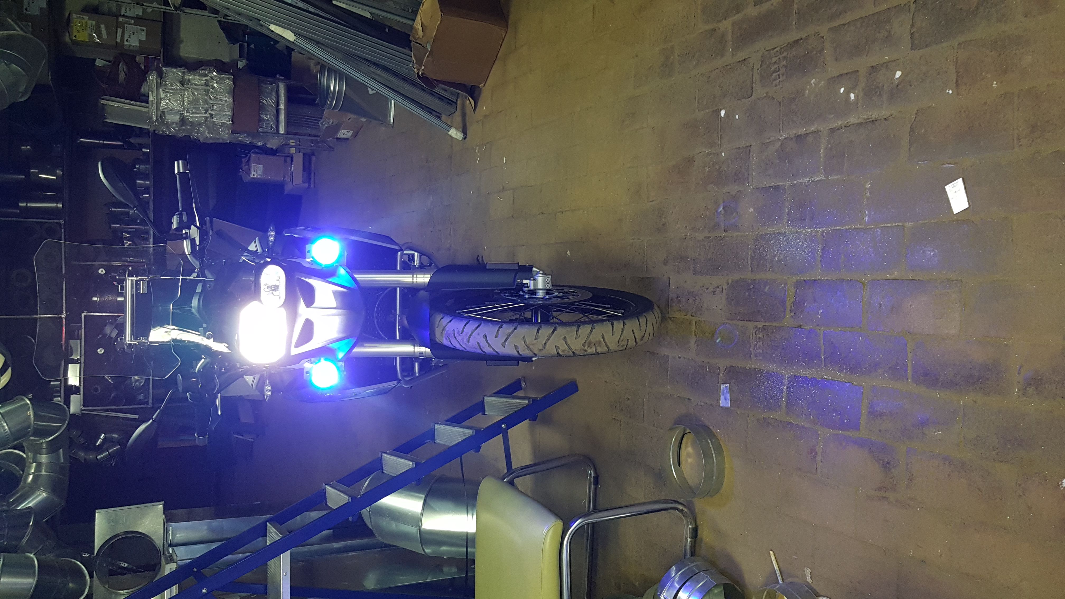Мои фонари не подходят для подсветки обочины, поскольку светят точечно. Метров с 20 световое пятно не превышает 1м в диаметре. Зато за счет страбоскопов, очень сильно повышается видимость мотоцикла в темное время суток в междурядье.