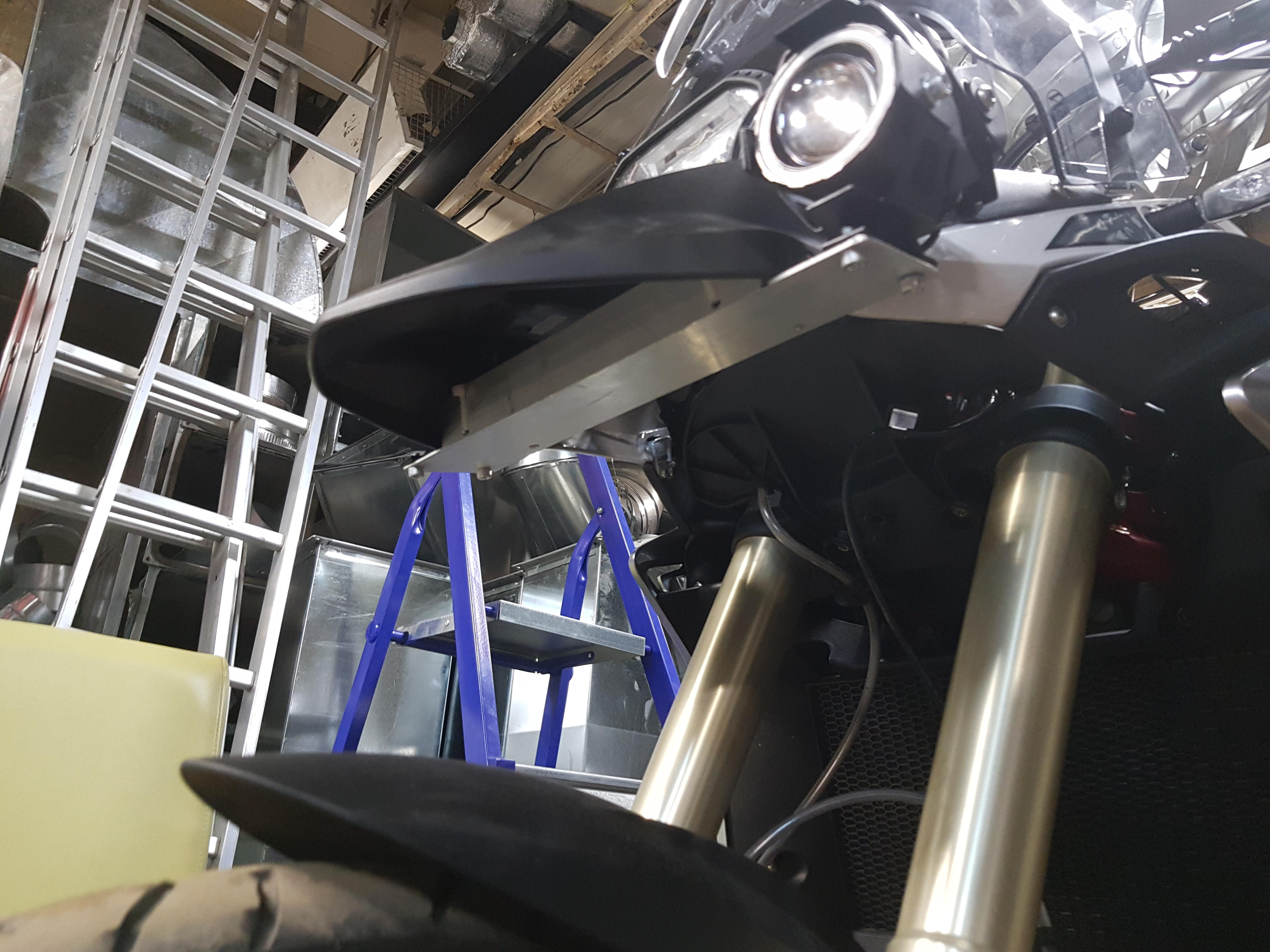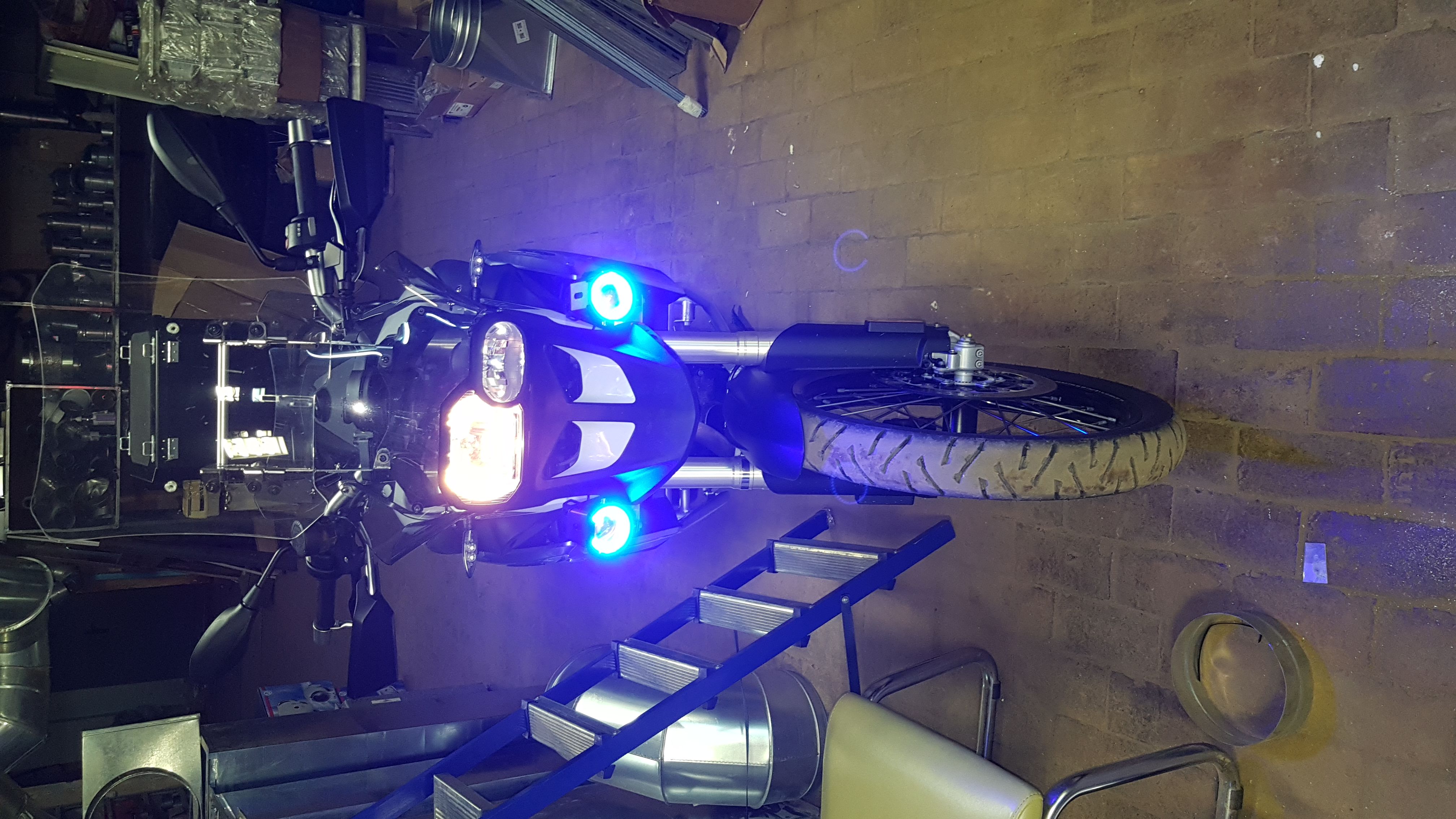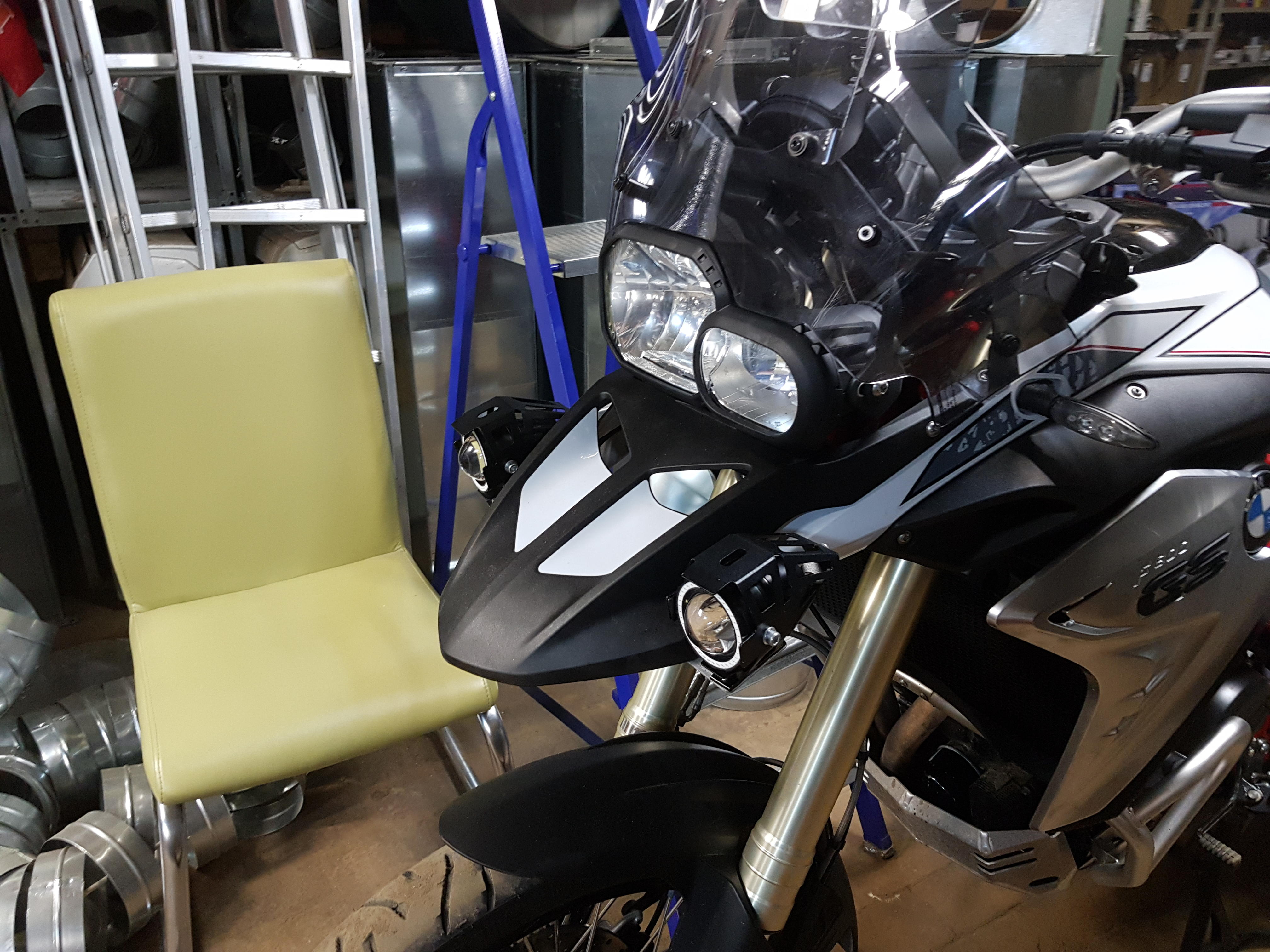 Уголок немного доработан и закреплен на родные винты клюва. Проводка подключена на габаритный и ближний свет. Поскольку мои фонари имеют 4 режима свечения: окантовка, яркий, половина яркости, мигание.