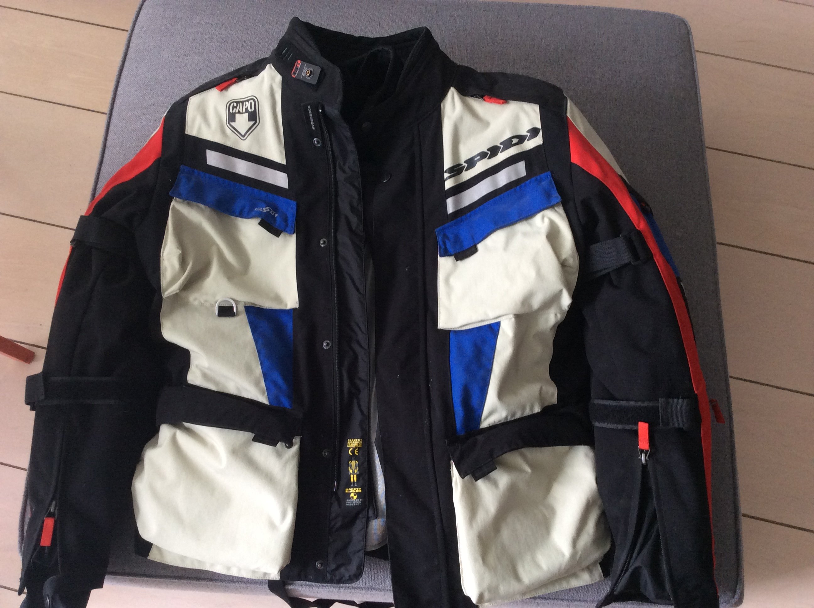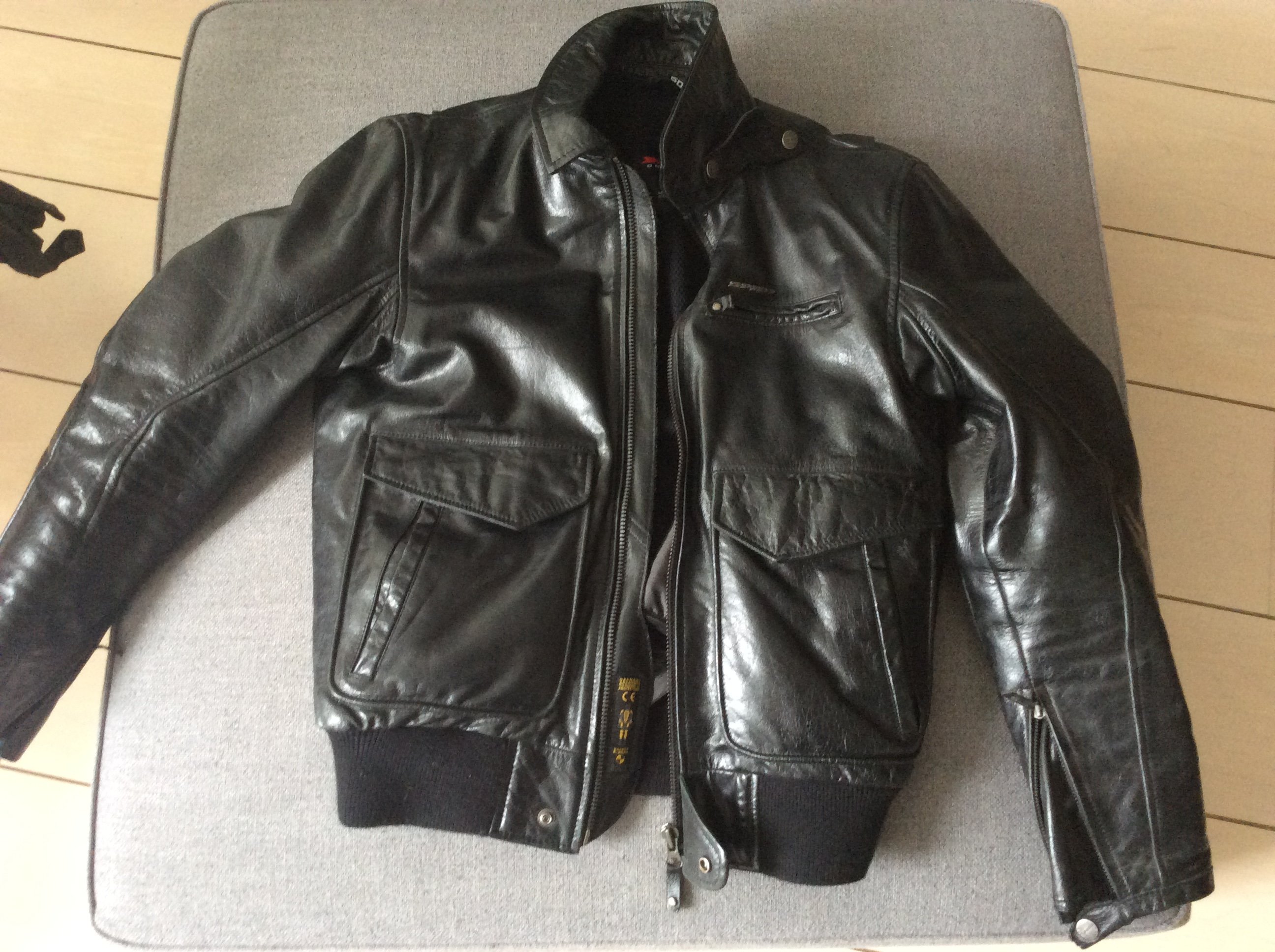 Покупал в Панавто. Тканевая - 3 слоя: антидождь, утпеплитель, и верх. Продаю Только две сразу. Размер L и 50. По факту они маломерят. У меня L, они мне впритык. Года два не одевал. Ссохлись. Защита локти, спина. Осмотр-забор - м аэропорт. 89160025052 Виктор