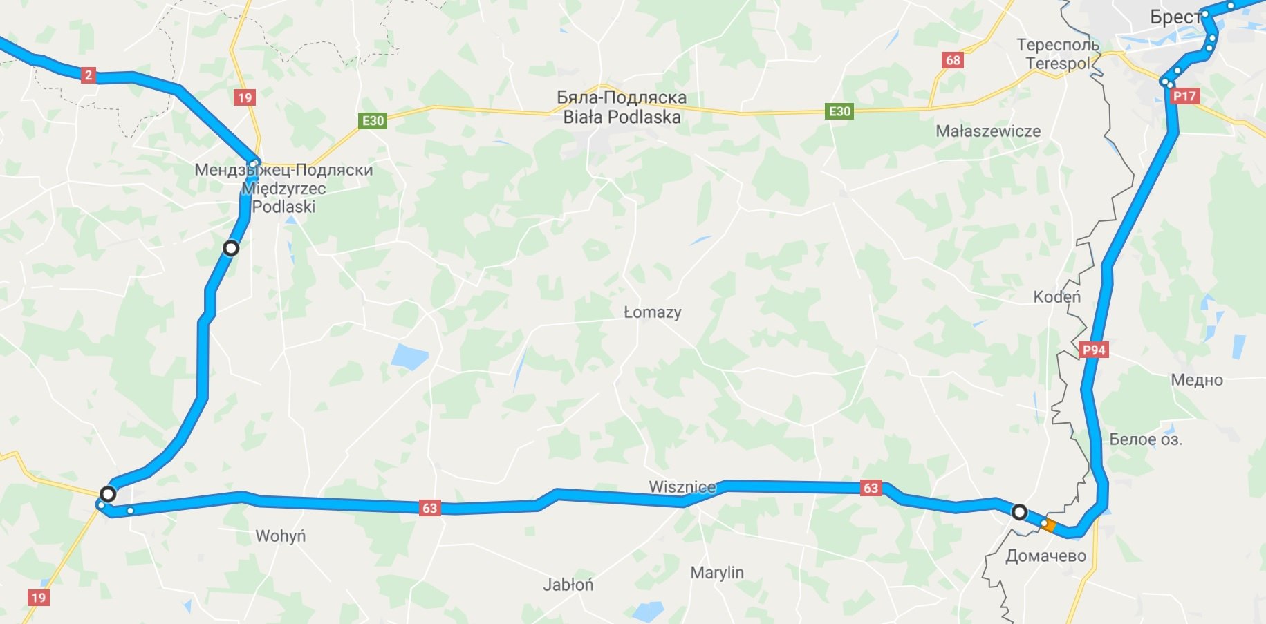От Бреста до Кракова единой нормальной дороги нет и первые 250км придётся ехать по "трёхзначным" дорожкам высокой степени вихлястости и неоднозначного качества, через населёнки с ограничениями скоростного режима.