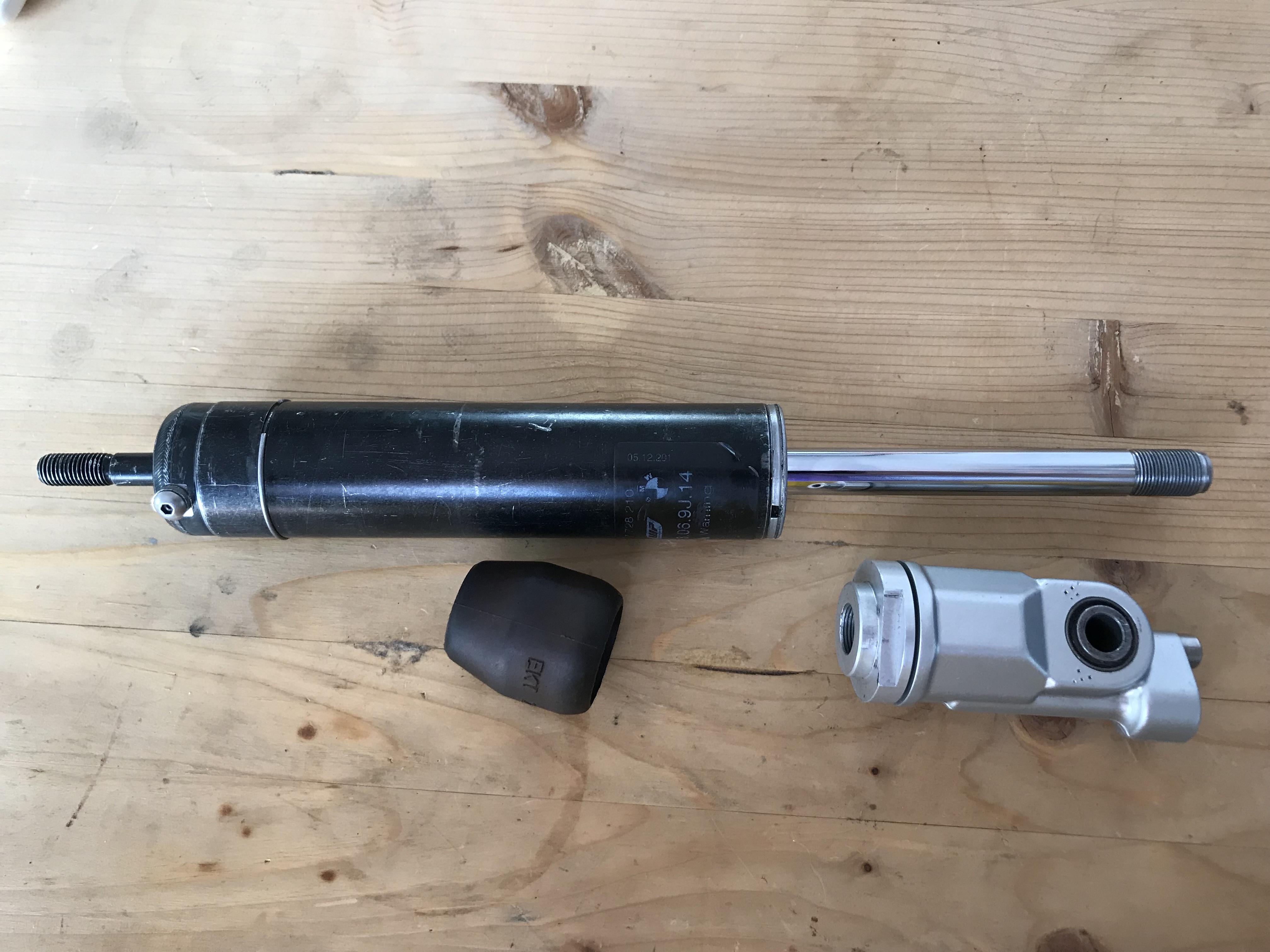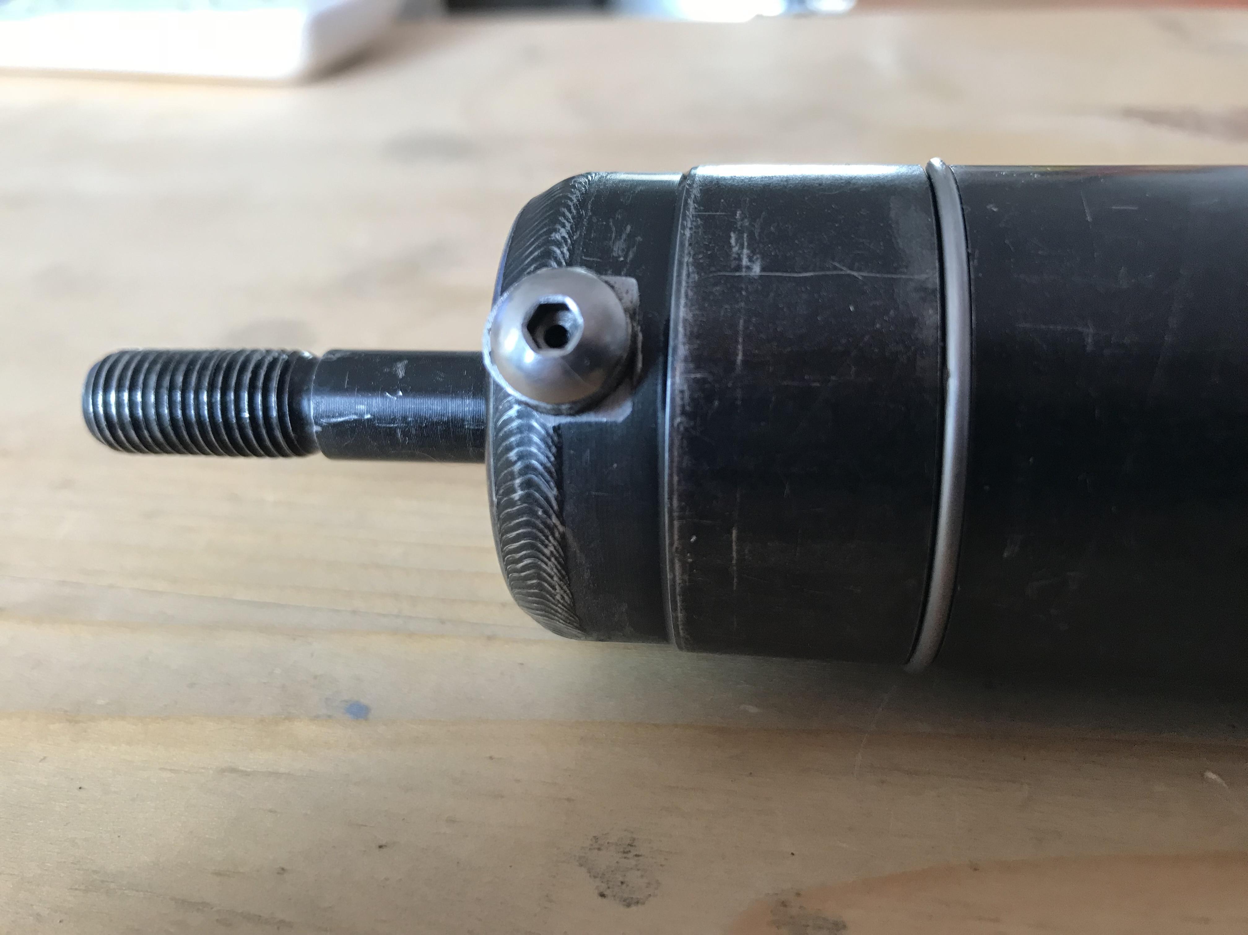 Дальше все как обычно, данный аморт эмульсионный т.е. масло с газом в одной емкости, в верхнюю часть аморта врезали болт под иглу,ну и дальше сборка и накачка (газ азот, масло 2.5w). Аморт поставлен на байк проходит испытания.