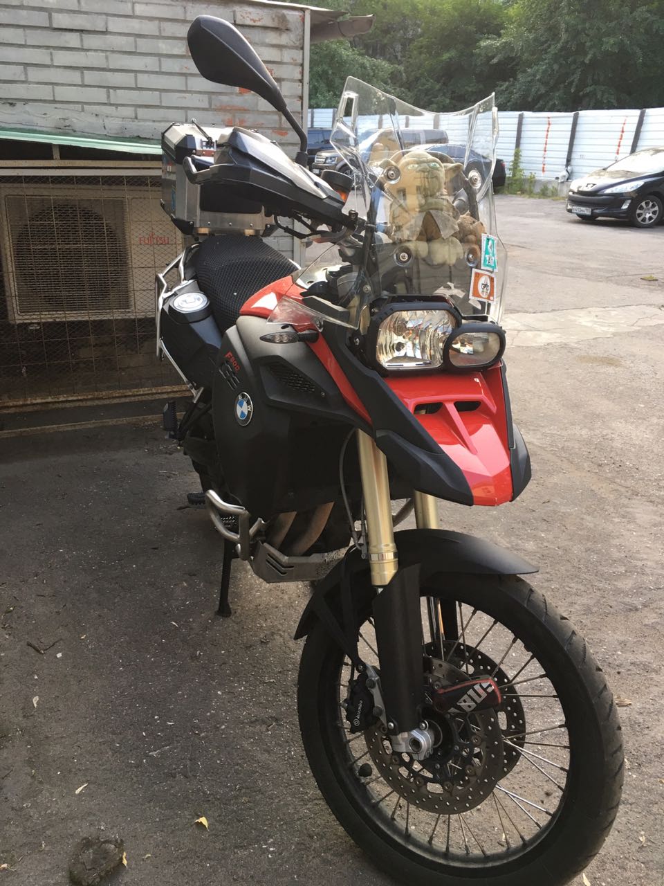 Мот куплен в Мэйджоре в декабре 2013 г, до истечения гарантии обслуживался там же. Пробег без падений. В комплекте: скотойлер, расширитель подножки, защита рук, хагер от грязи на заднее колесо,навигатор zumo 350,датчик давления в колесах, нормальный прикуриватель )), комплект кофров БМВ, сумка на бак. Резина Анаки 3 прошла 7-8 тыс.км, цепь и звёзды тоже 7-8 тыс. Трещина в фаре ближнего света, герметичность не нарушена.