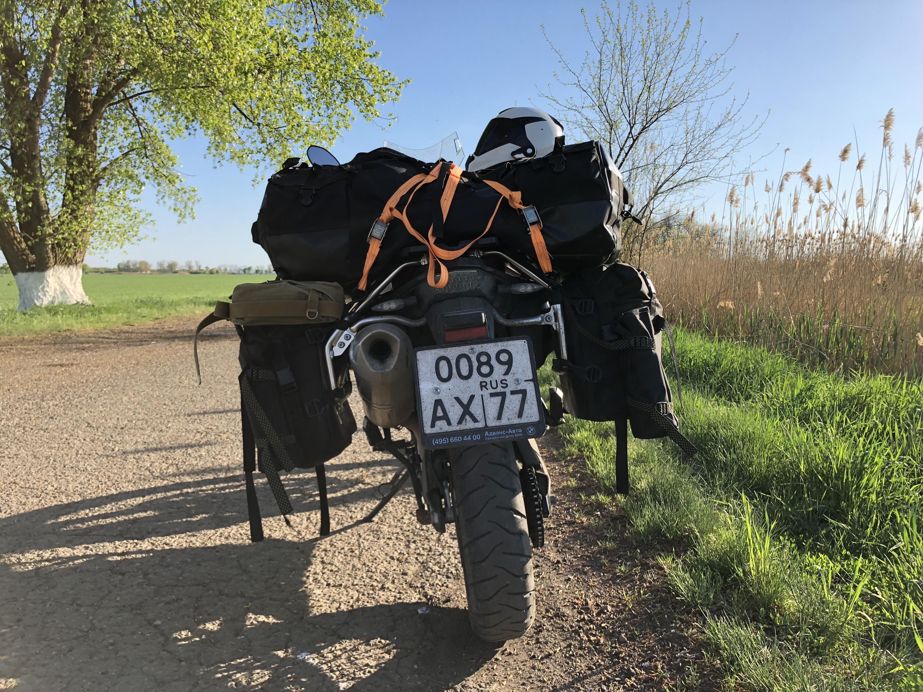Герметичность сумки достаточная. Для водного туризма не подойдёт, но для движения в дождь на мотоцикле в течении всего дня без "мокрых" и неприятных последствий более чем достаточна. Загружаю в неё только лёгкие вещи: палатка, спальник, каримат, верхняя одежда и т.п. - чтобы сумка на багажник не была тяжелой. В противном случае сложно балансировать мотоцикл на сложных поверхностях и на малых скоростях.