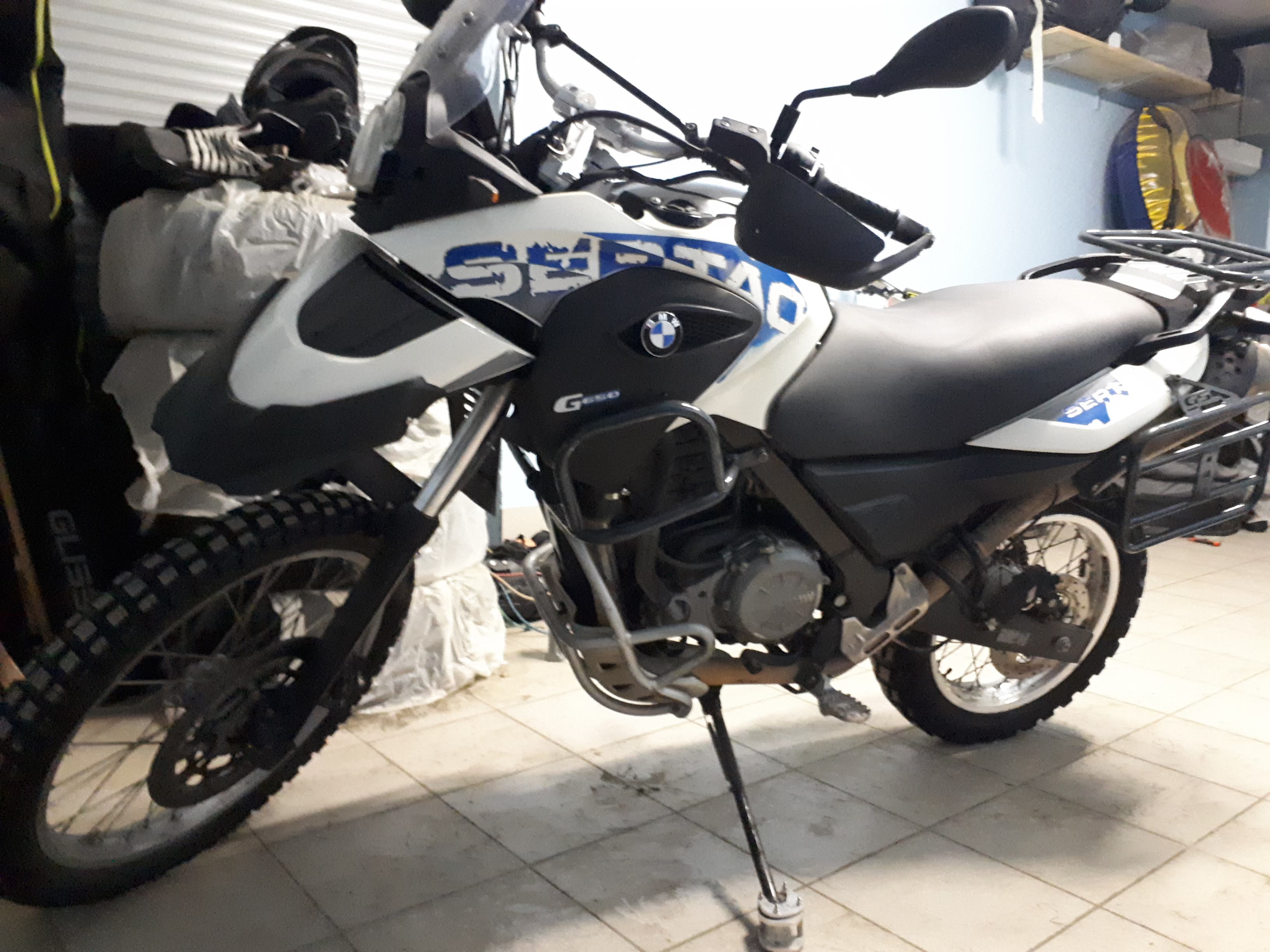 Продается G650GS Sertao (обновленный F650GS Dakar). Отличный вариант чтобы распробовать эндуро туризм за малые деньги. На мотике есть защитные дуги и багажная система. Кроме этого, установлены расширенные туристические подножки и проставки руля.