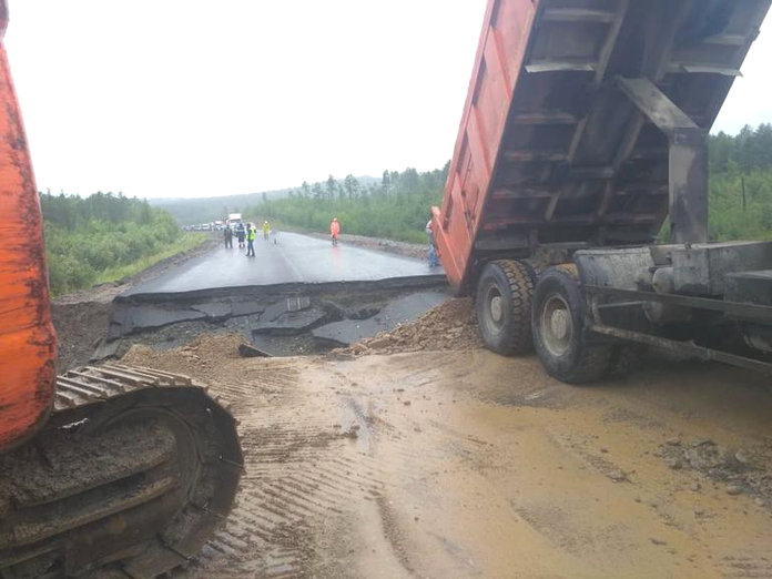 В Приамурье ливни размыли участок федеральной трассы