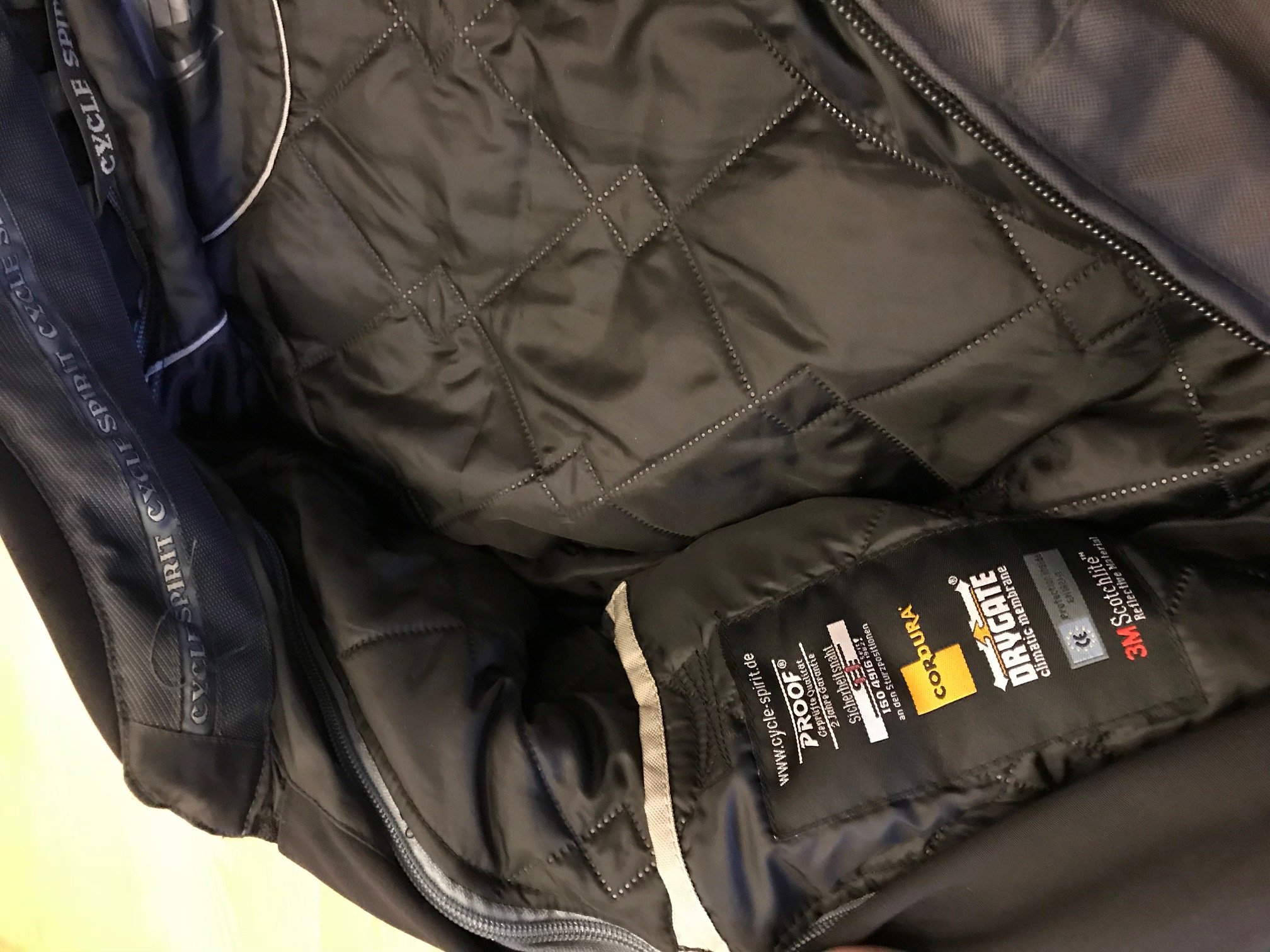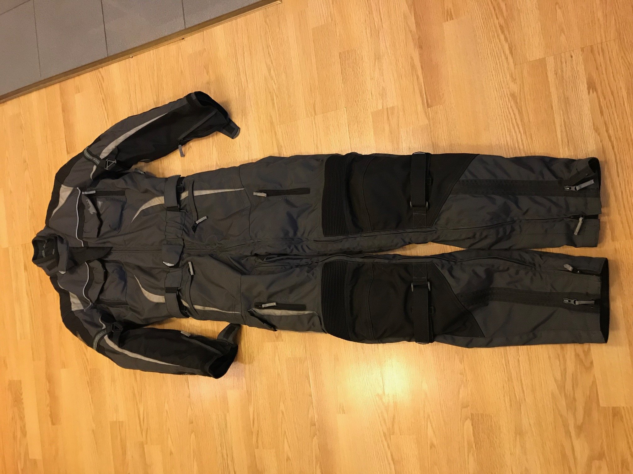 Тёплая подкладка отстёгивается по всей длине (туловище и штанины). Защита спины - мягкая (типа поролона). Защита колен, плеч и локтей - более жёсткая, но сгибается и потом восстанавливает форму. Много внешних и внутренних карманов. Отлично на раннюю весну и осень, когда утром около ноля-пяти градусов (на термобельё + джинсы). Внутри просторный, можно надеть нормальную одежду - на работу приехал, снял комбез и не надо больше ничего переодевать.