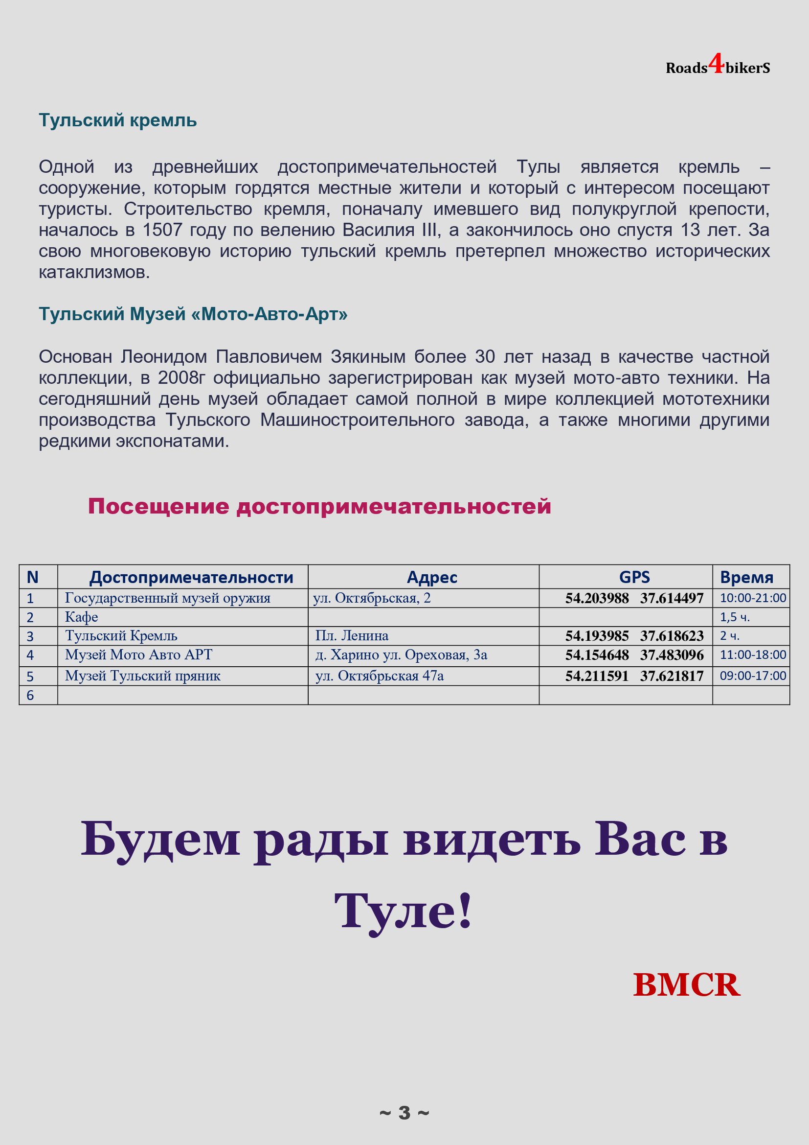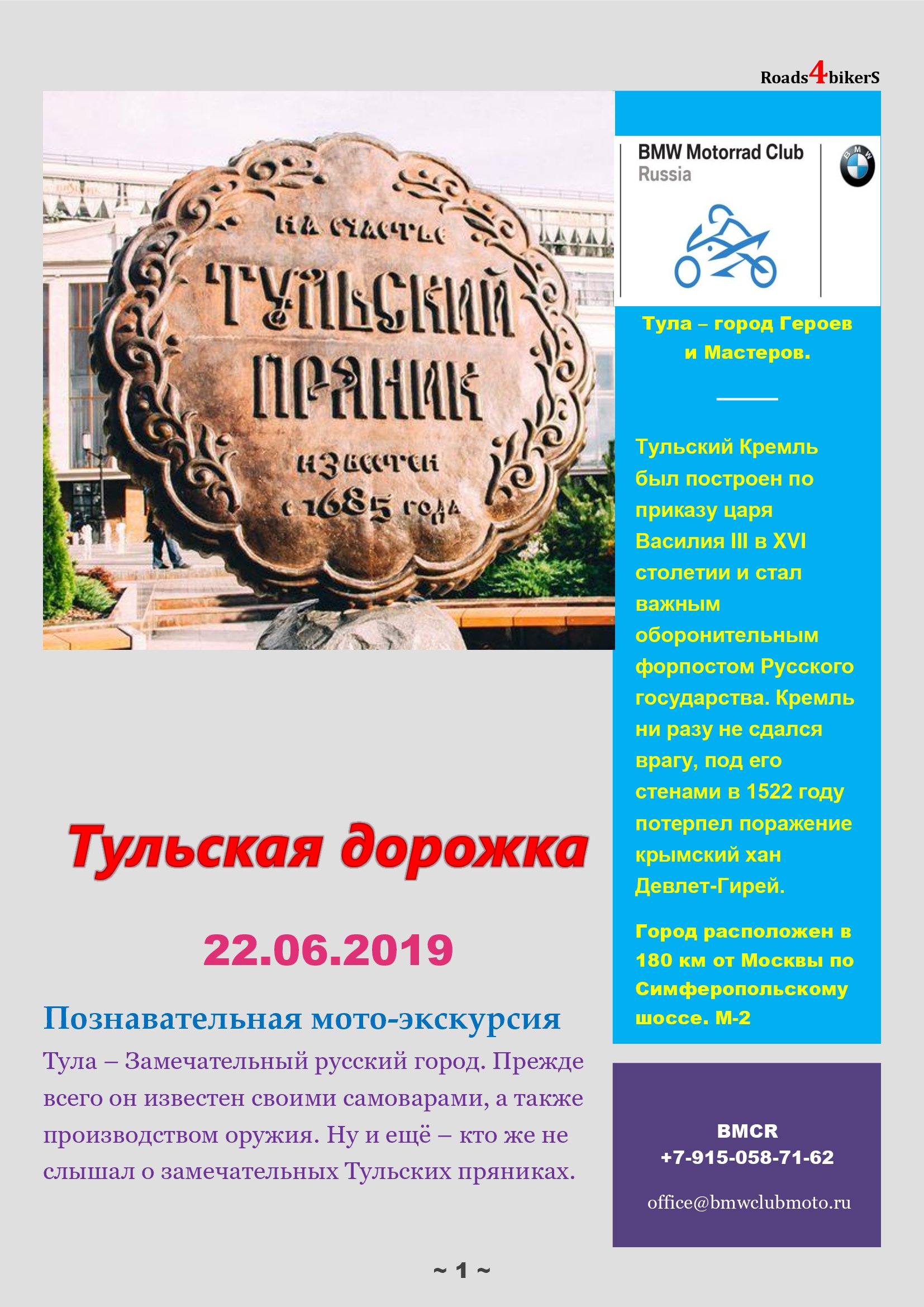 Друзья! BMW MOTОRRAD CLUB RUSSIA для всех желающих 22.06.19 организует тур выходного дня г.Тула.