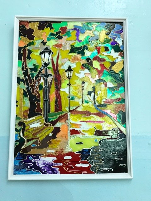 Так,например,ребята рисуют витражными красками на стекле!!!!