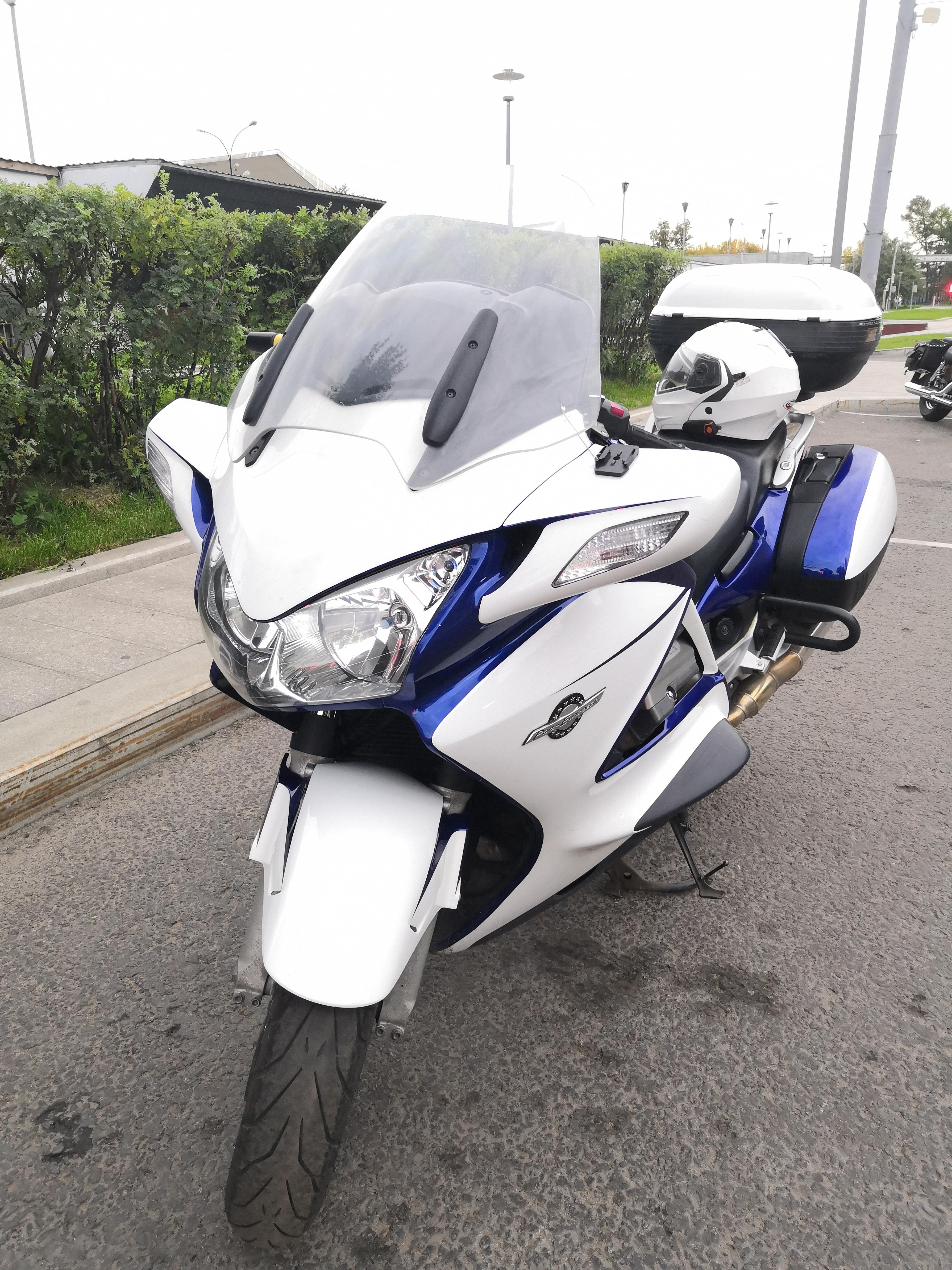 Ни разу не падал, не прикладывал, не ронял и т.п. Никакого колхоза, кроме площадки для экшн-камеры (камера в подарок покупателю). Установлены защитные дуги от Вити Boga г. Ярославль. В боковых кофрах дорожные сумки. Центральный кофр GIVI Maxia на 52 литра.