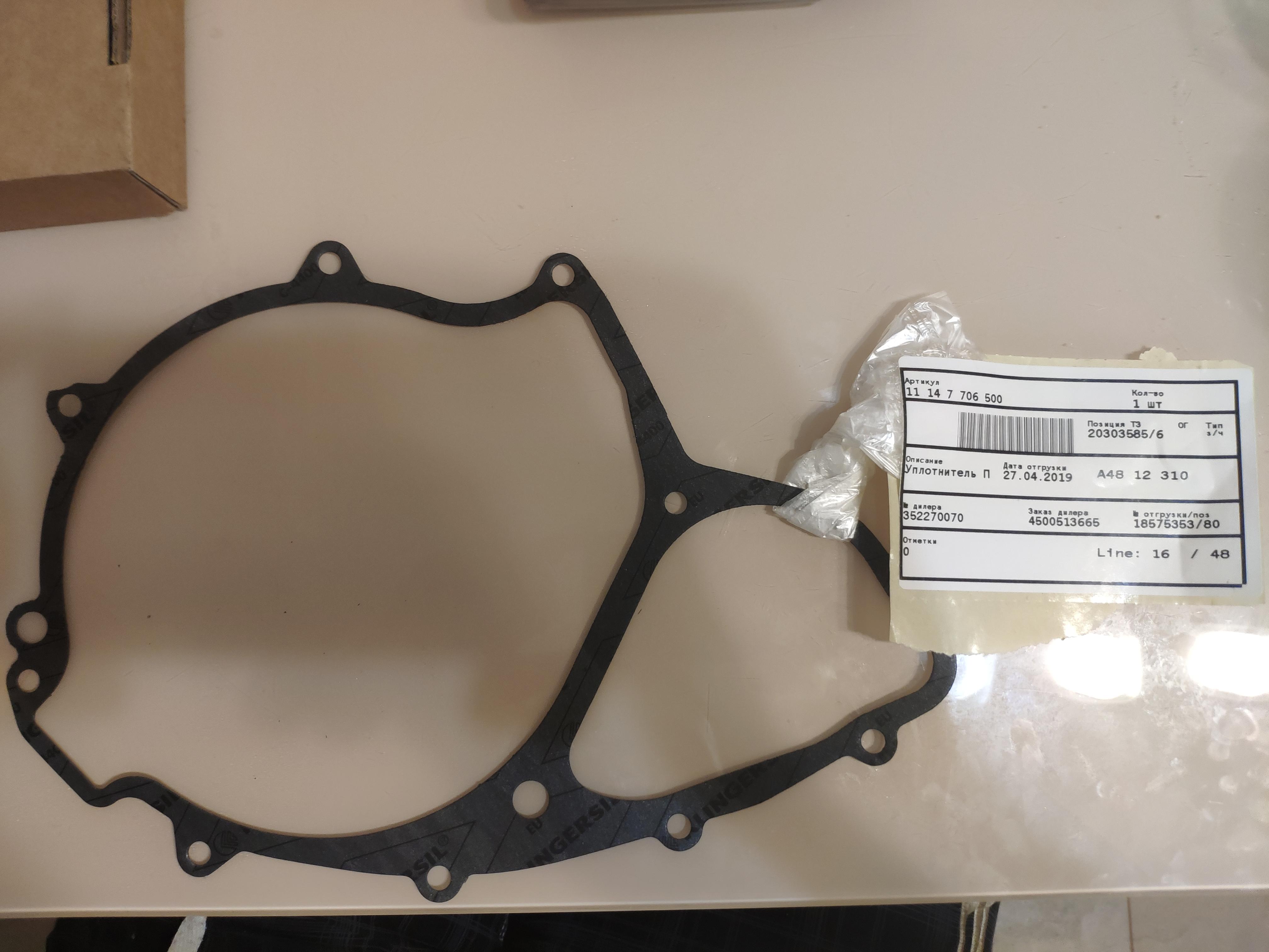 6. Уплотнительная прокладка правой крышки двигателя (арт. 11147706500) - 400 руб.;