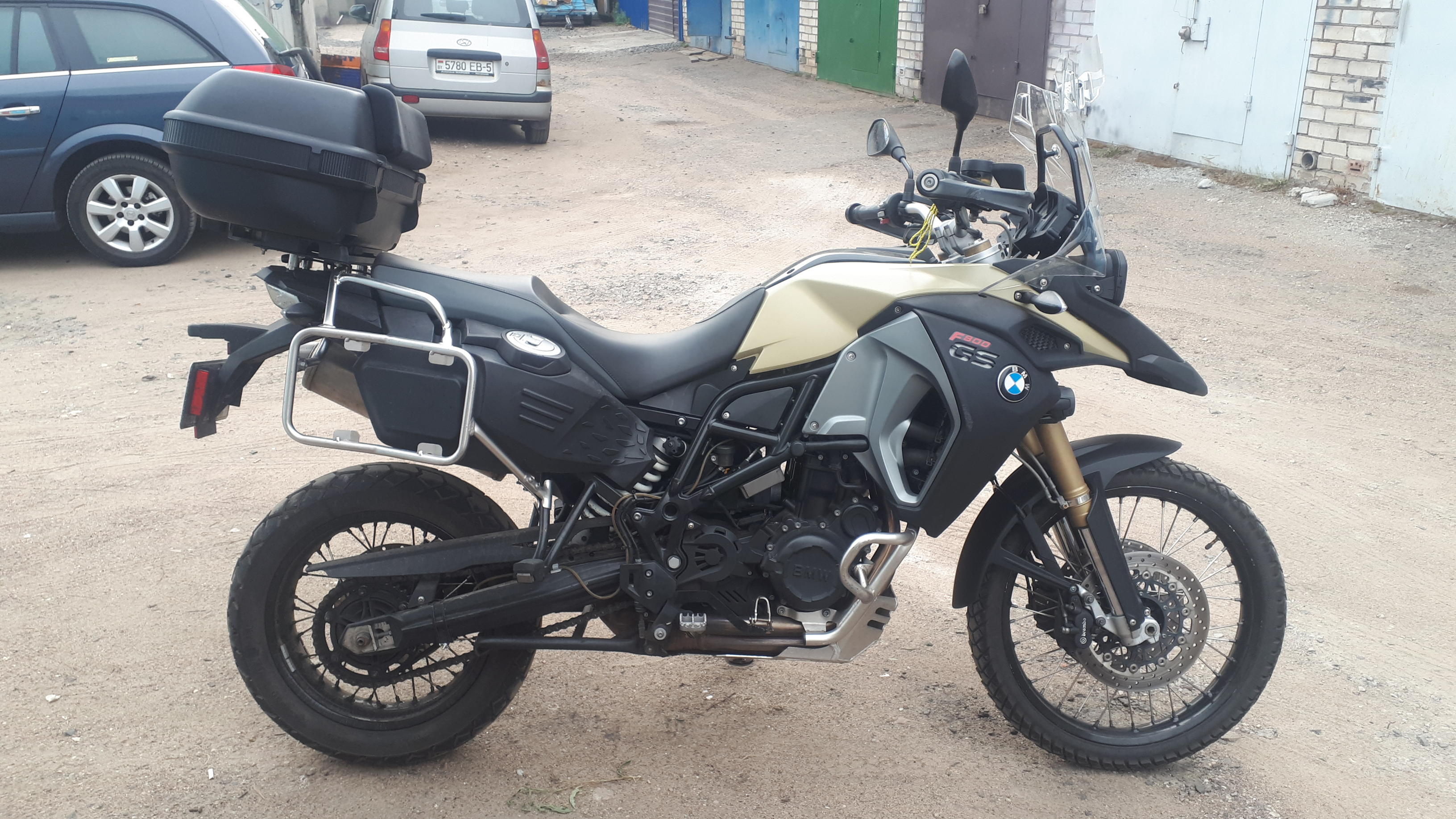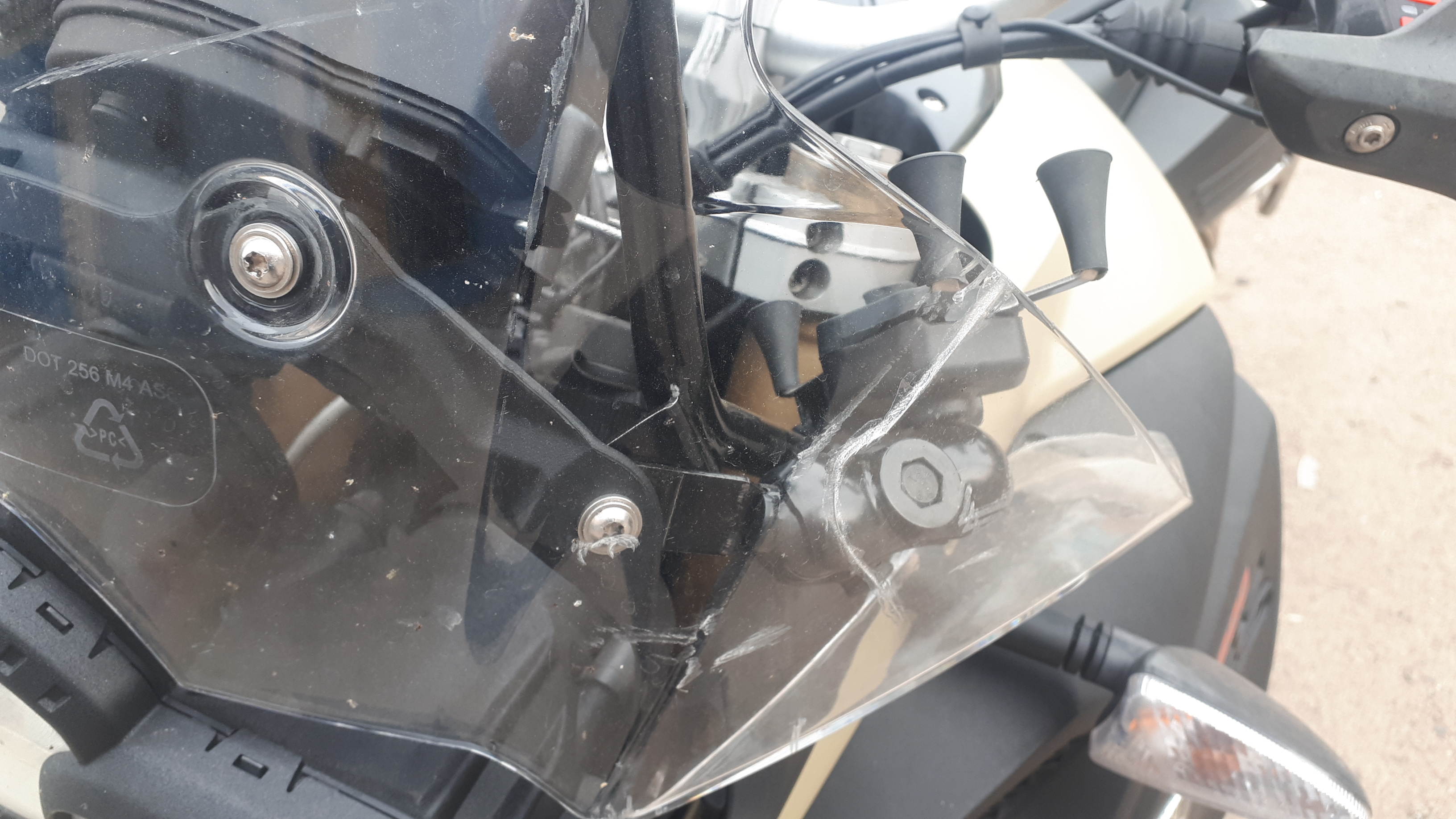 Есть незначительные коцки на пластике, трещина на стекле (заклеена, осталось прилепить сверху наклейку и никто не узнает), цепь и звезды, масло, передняя резина поменяны на пробеге 60 000.