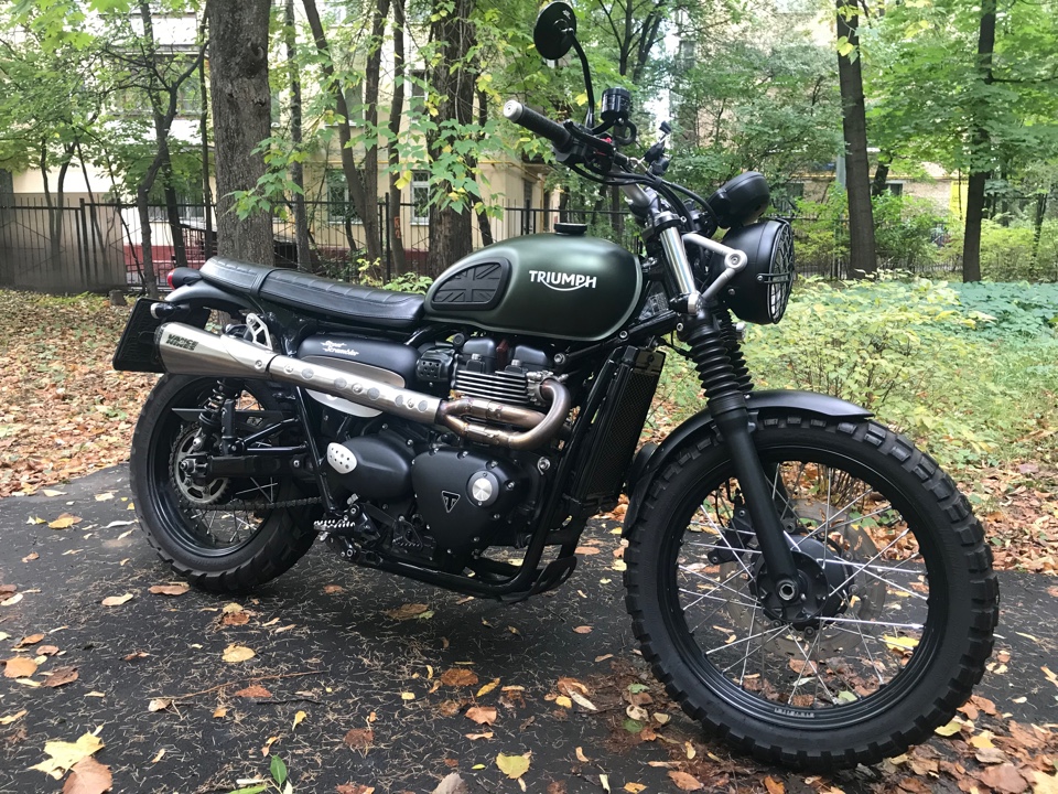 Двигатель – установлен распредвал от английской компании TEC Custom, специально разработанный для данной модели. Обеспечивает чуть большее поднятие клапанов, что дает ощутимо бОльший момент на средних и высоких оборотах. Теперь у вас есть нормальная, живая 3яя передача и отличная 5ая. На стенд не загонял, не мое это. Примерная прибавка в мощности 10-12 лошадей вкупе с прямотоком. Сравнивал со стоковым Триумфом – это небо и земля. По отдаче он больше похож на 1200ый мотор. Да, работы по установке проводились официальным дилером, заказ/наряд и все такое есть.