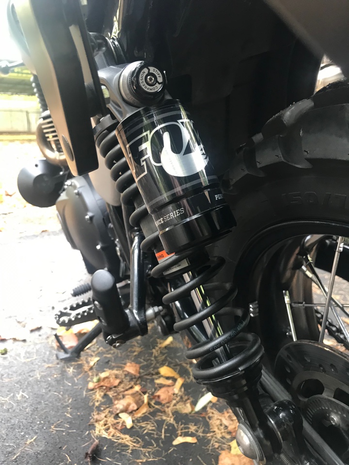 Задняя подвеска – полностью регулируемые амортизаторы FOX, оригинальный тюнинг для этой модели, абсолютно другое поведение на дороге, без пробоев, подпрыгиваний и раскачек, мотоцикл стабилен в любом положении и на любой дороге.