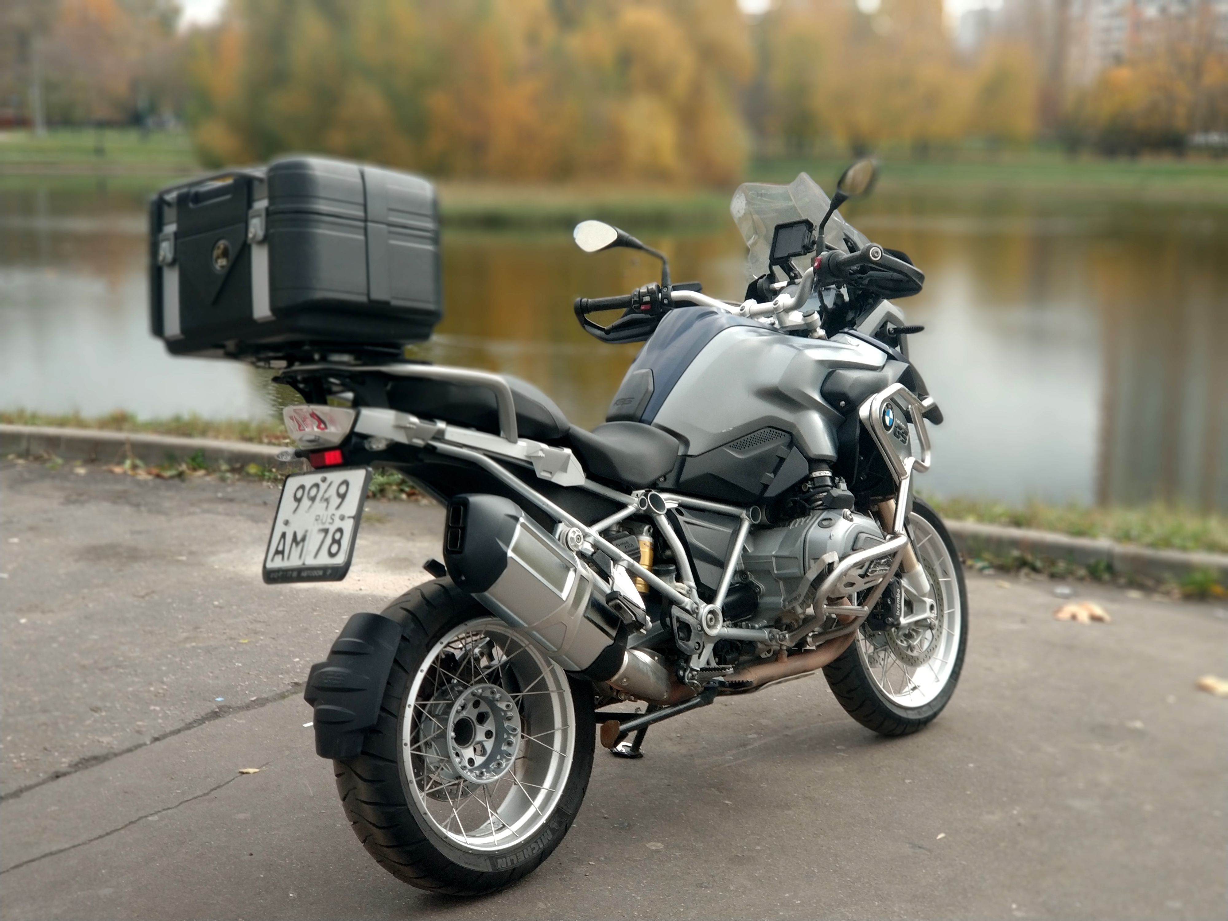 Дополнительно стоят: защита фары, задний кофр, нижние и верхние дуги, защиты клапанных крышек, расширитель подножки, защиты радиаторов.